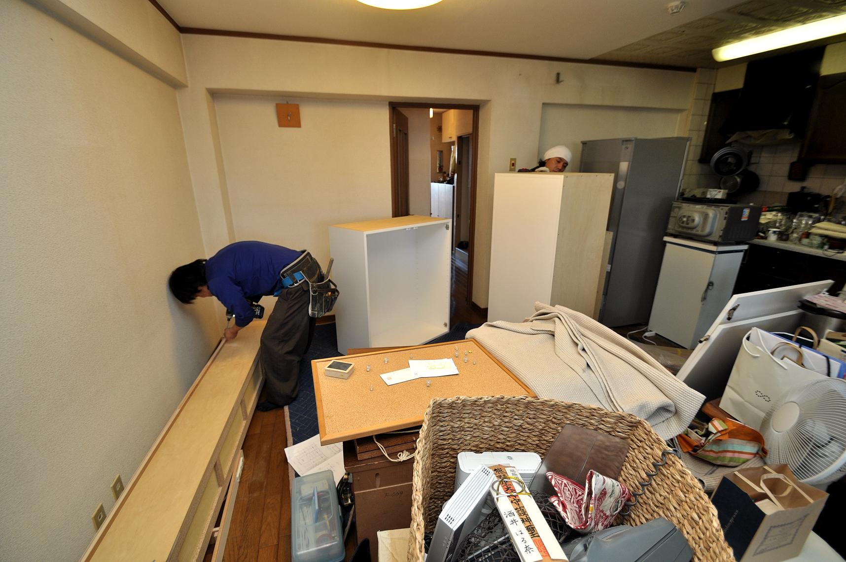 足立区 S邸 リビングボード/リビング壁面収納 オーダーメイド家具 施工状況①