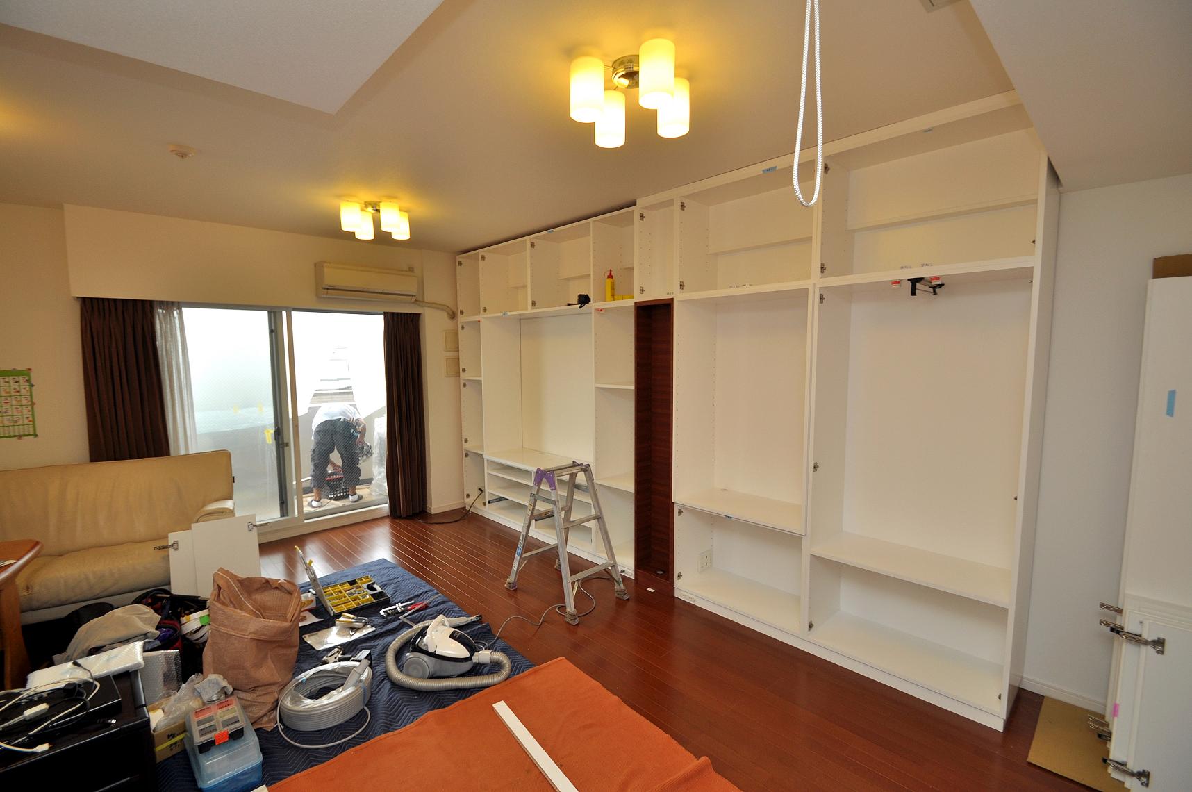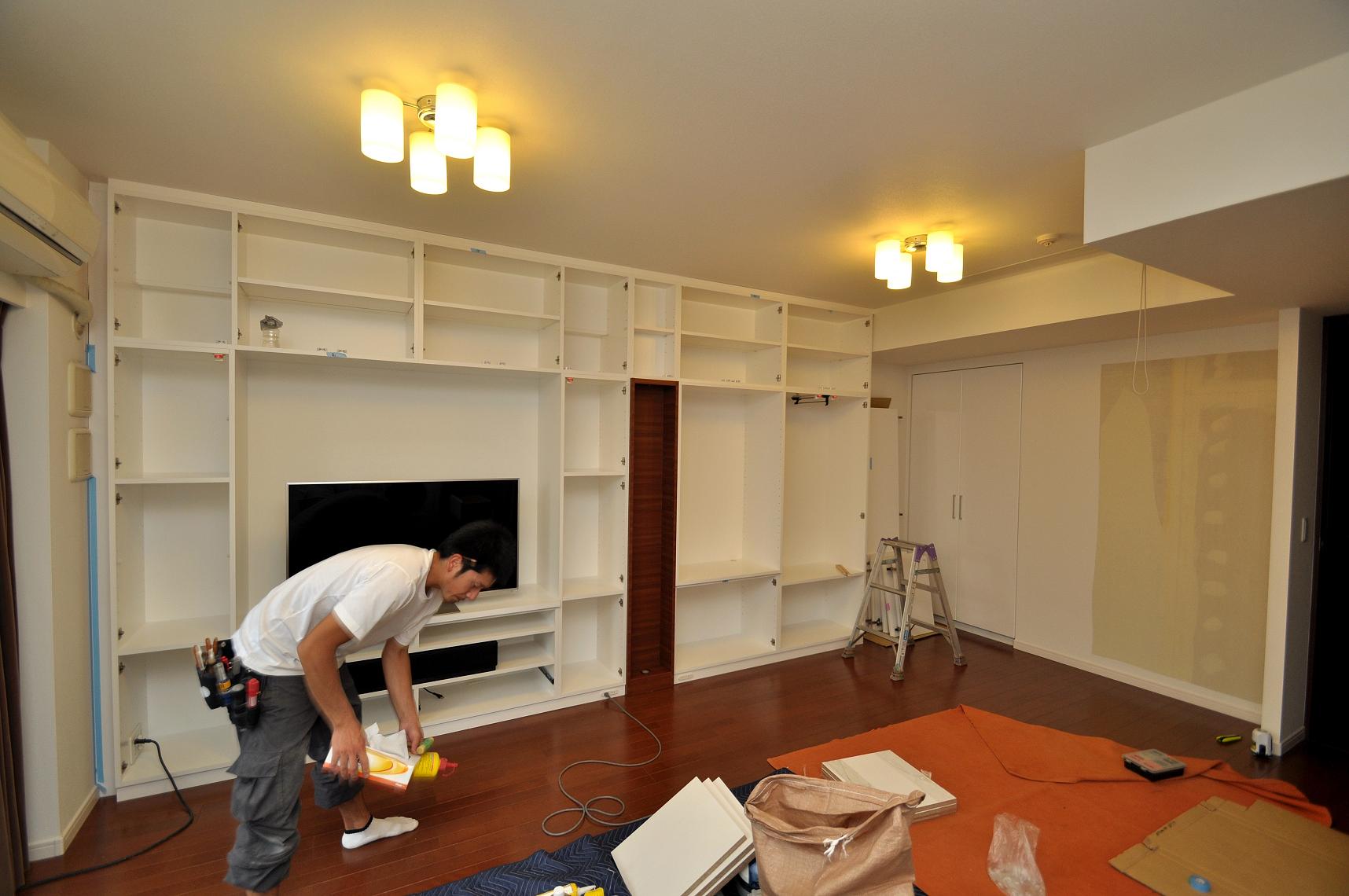 品川区 M邸 リビングボード/リビング壁面収納 オーダーメイド家具 施工状況④