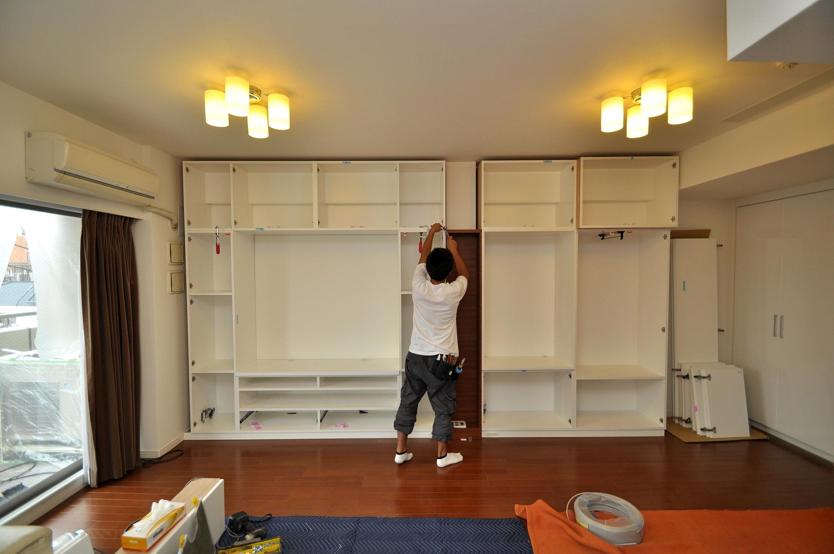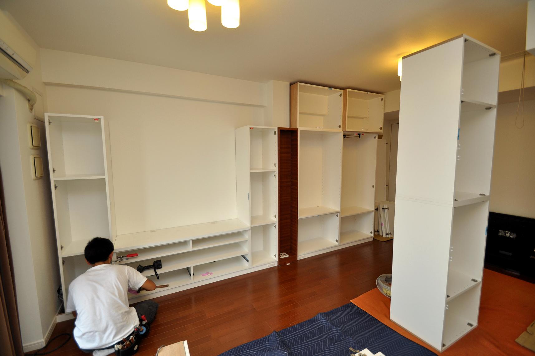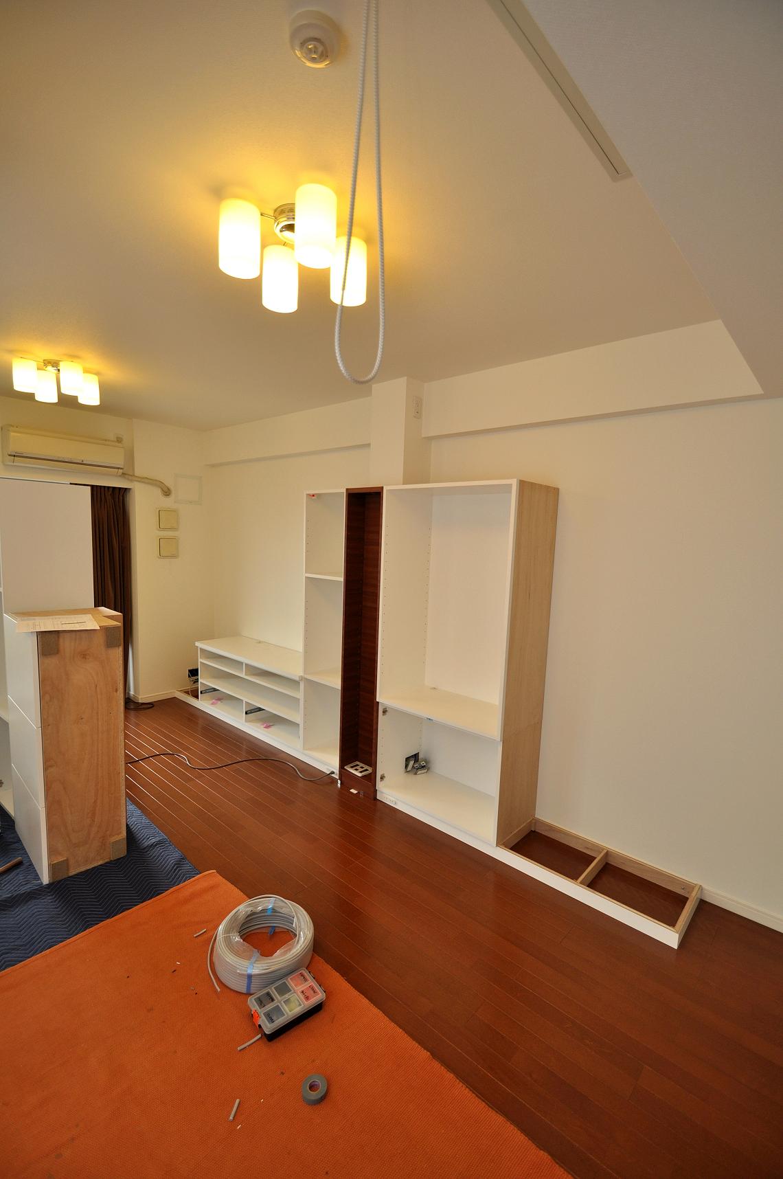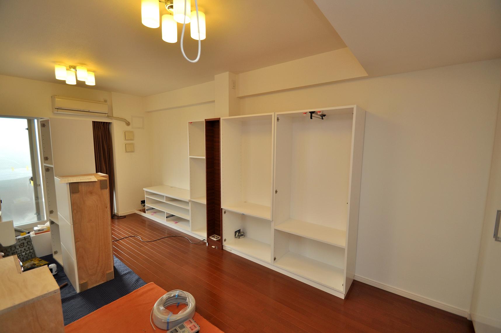 品川区 M邸 リビングボード/リビング壁面収納 オーダーメイド家具 施工状況②