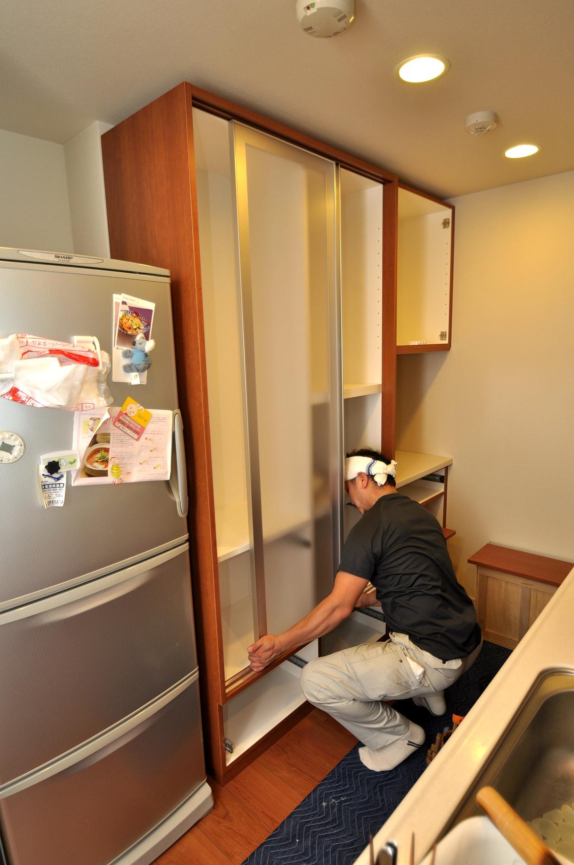 葛飾区 T邸 カップボード/キッチン壁面収納 施工状況