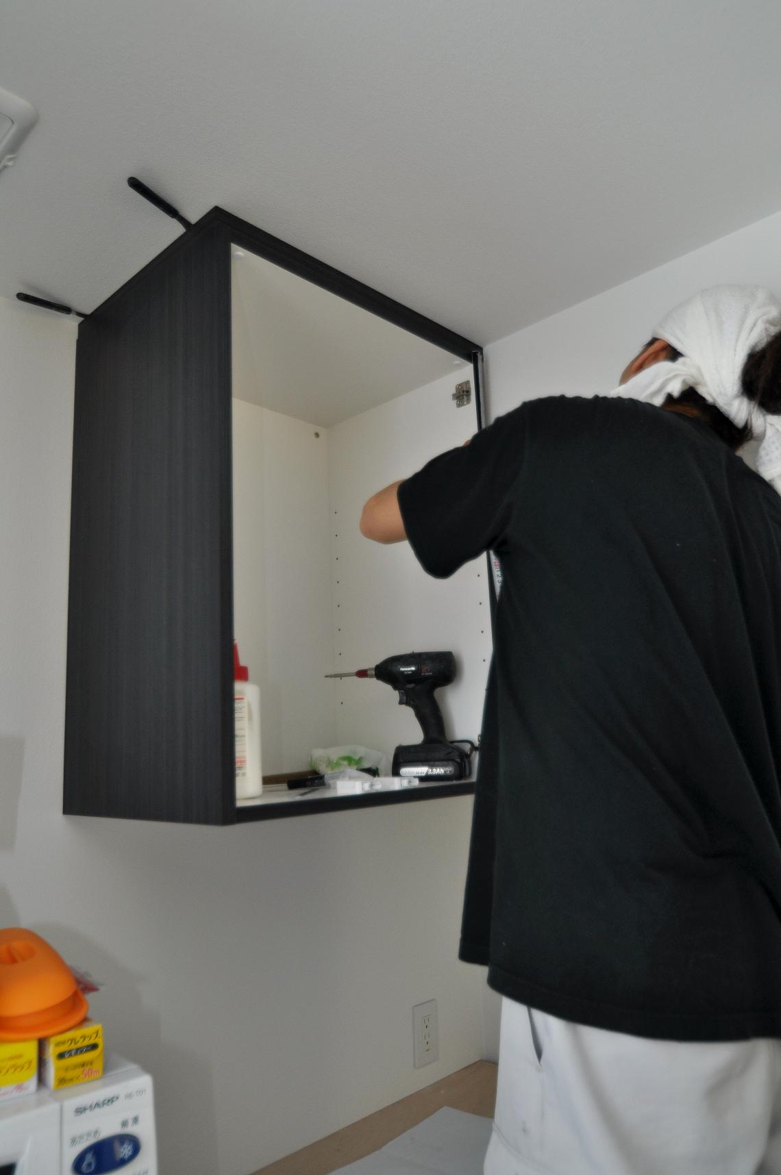 扉の吊り込み~抽斗の設置、