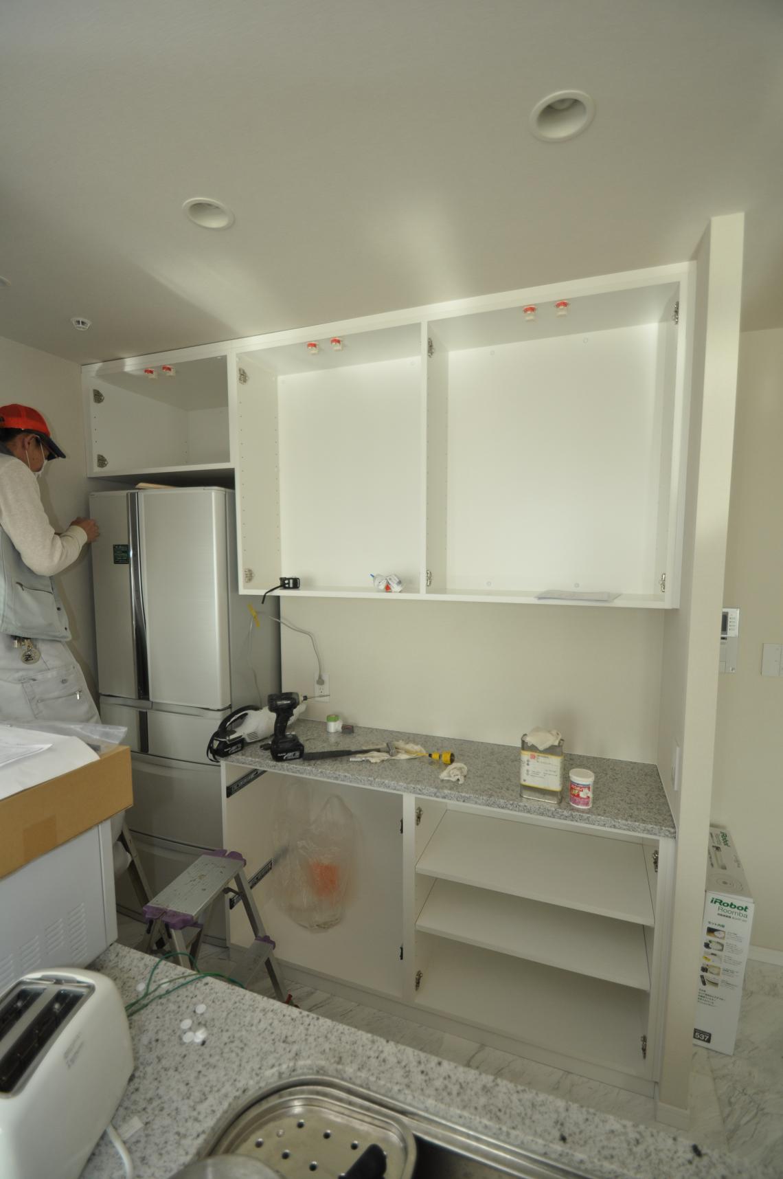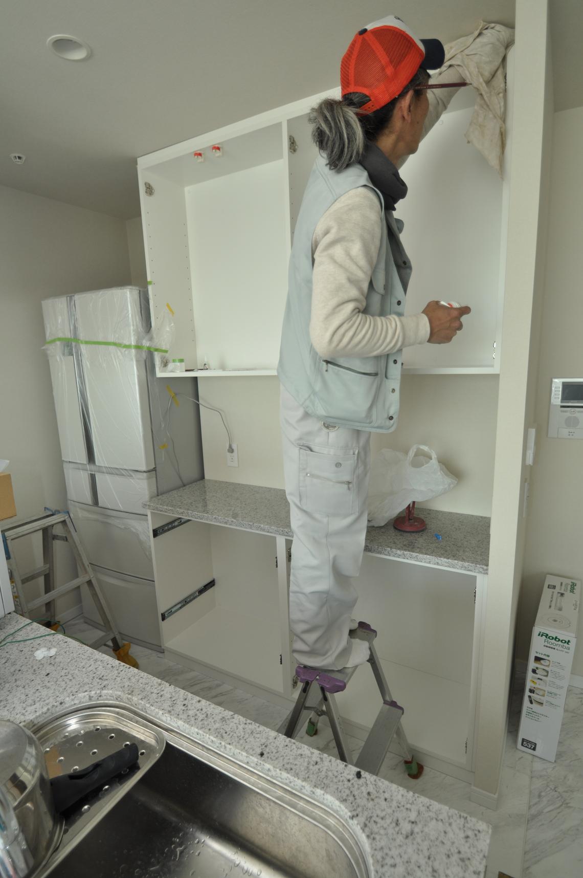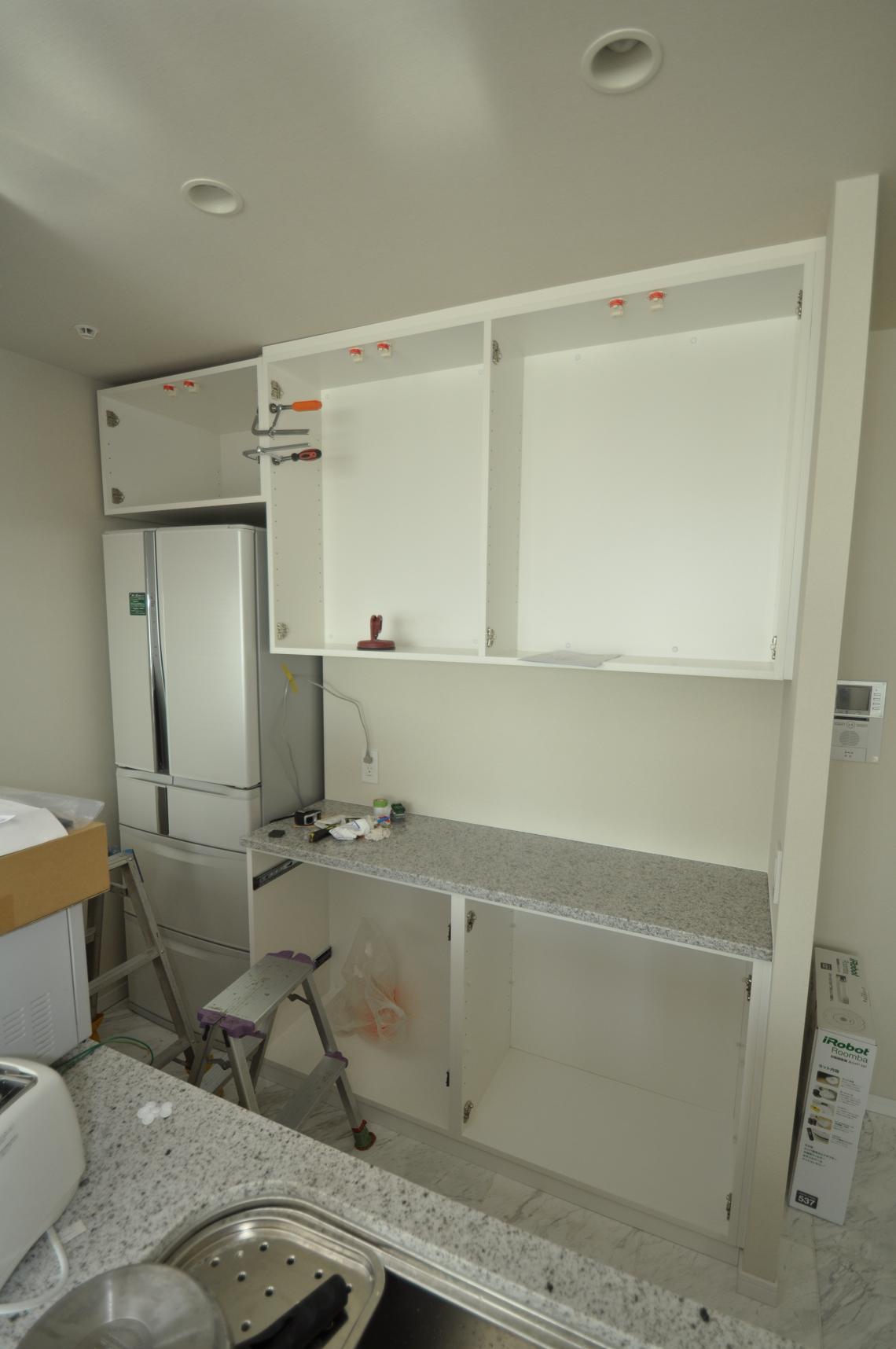 ハウスメーカーオプション 横浜市 カップボード(キッチン壁面収納) 施工状況②