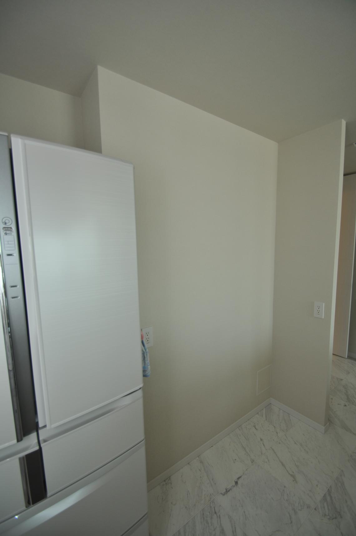 冷蔵工上に開き戸収納、メインスペースに大型のセパレートタイプの施工となります。