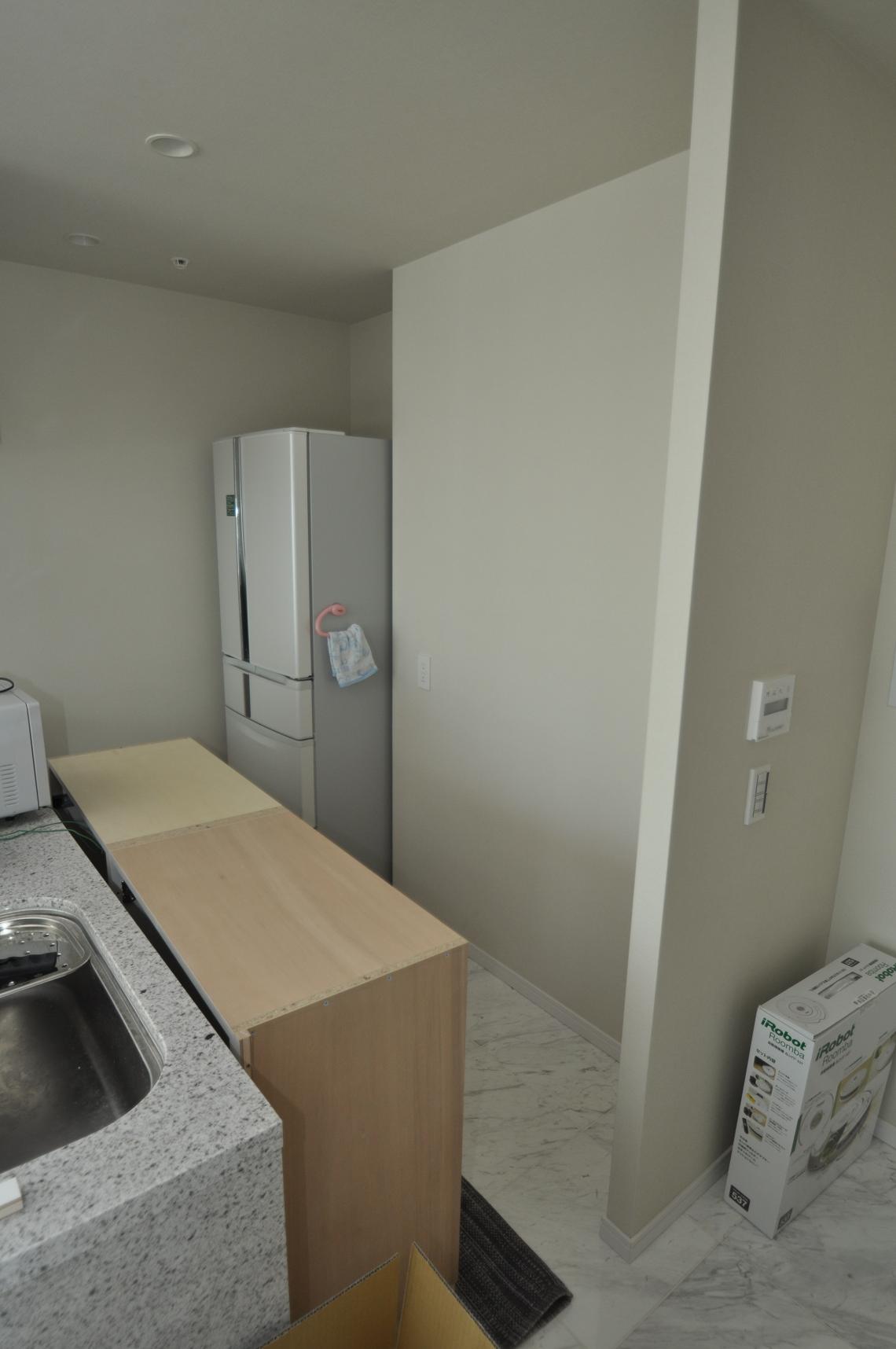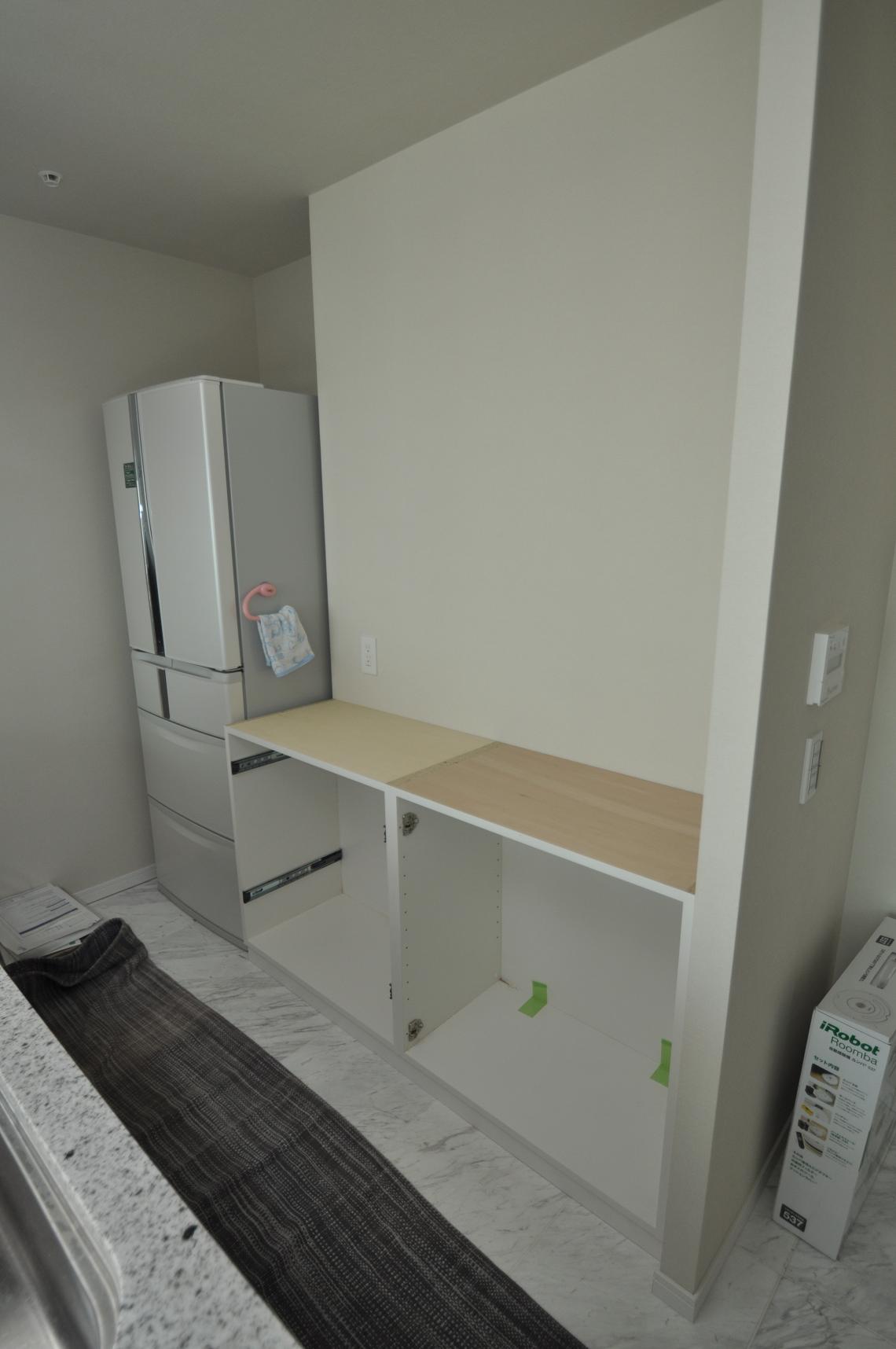 ハウスメーカーオプション 横浜市 カップボード(キッチン壁面収納) 施工状況①