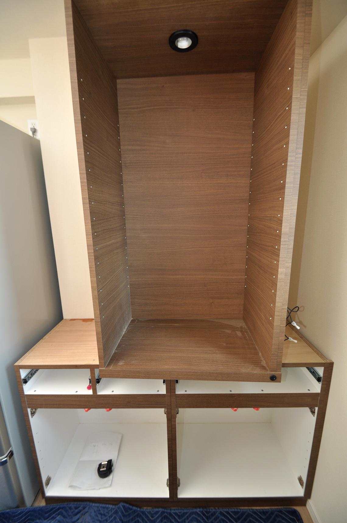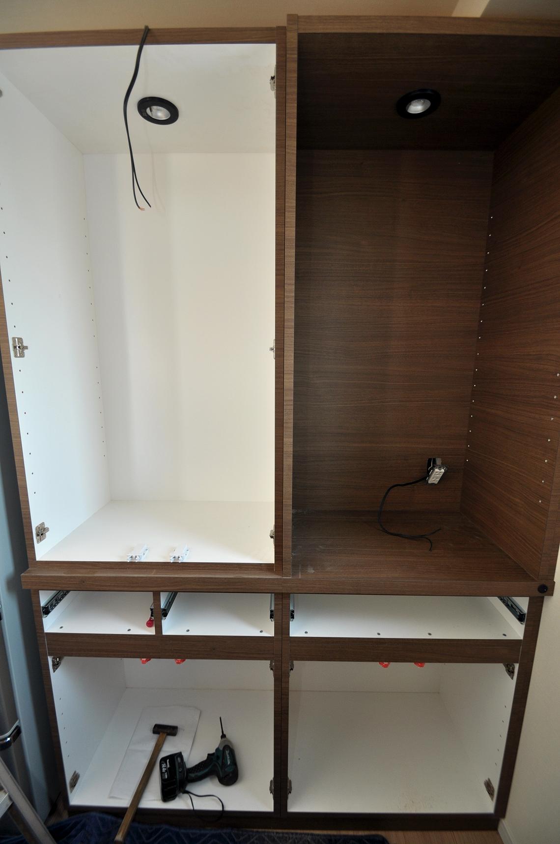 左側の開き戸収納部分も仮置き~結線していきます。