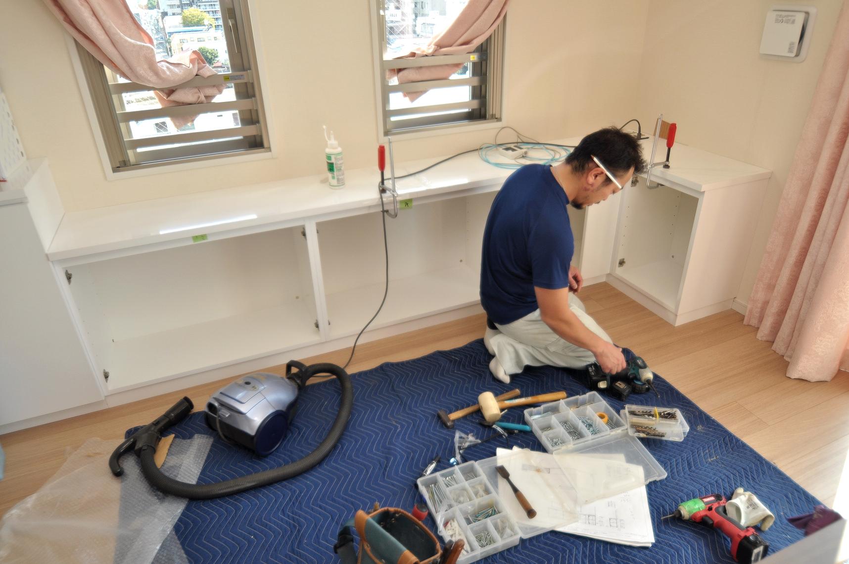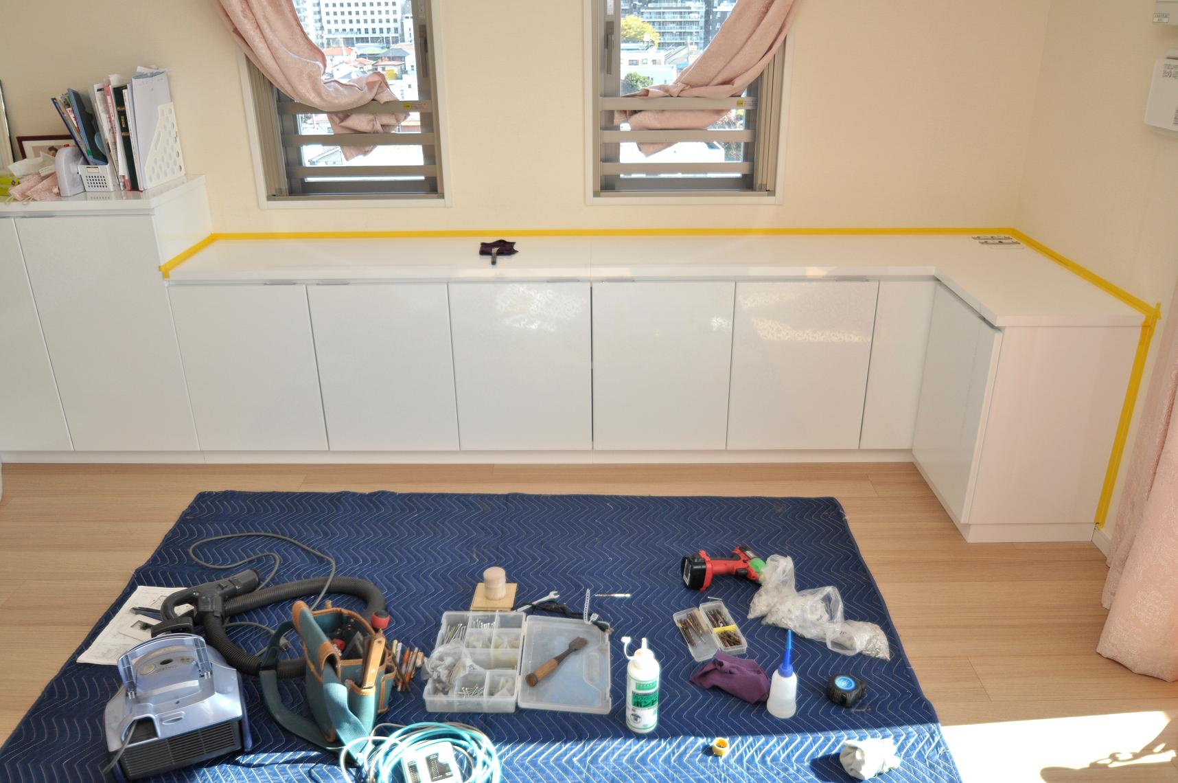カップボード/キッチン壁面収納の施工状況をUPさせていただきますw