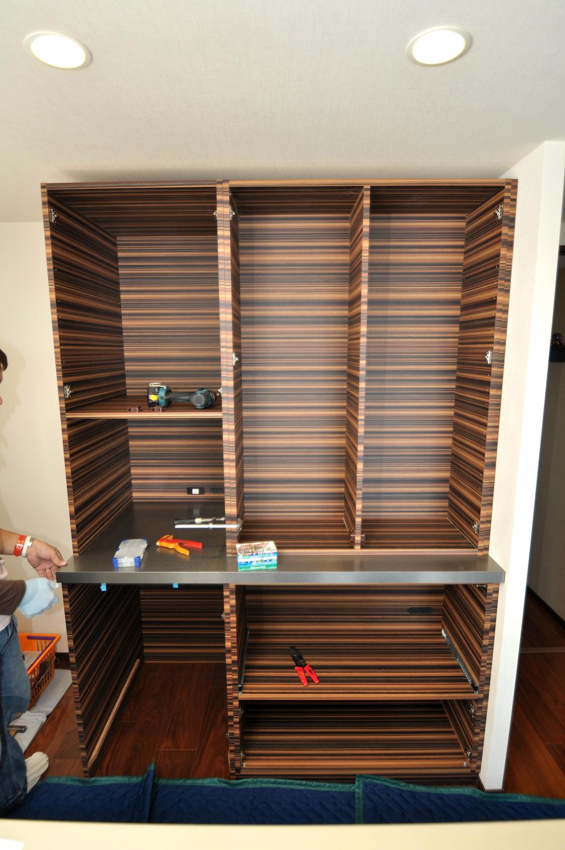ハウスメーカーオプション 茅ヶ崎市 カップボード(キッチン壁面収納) 施工状況③