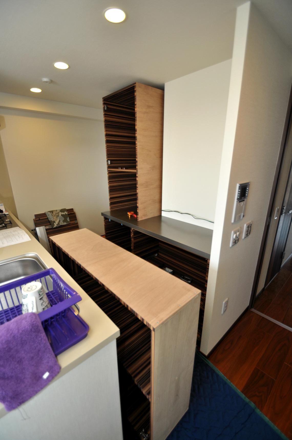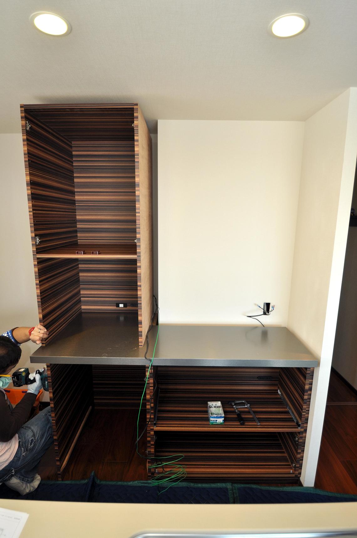ハウスメーカーオプション 茅ヶ崎市 カップボード(キッチン壁面収納) 施工状況②