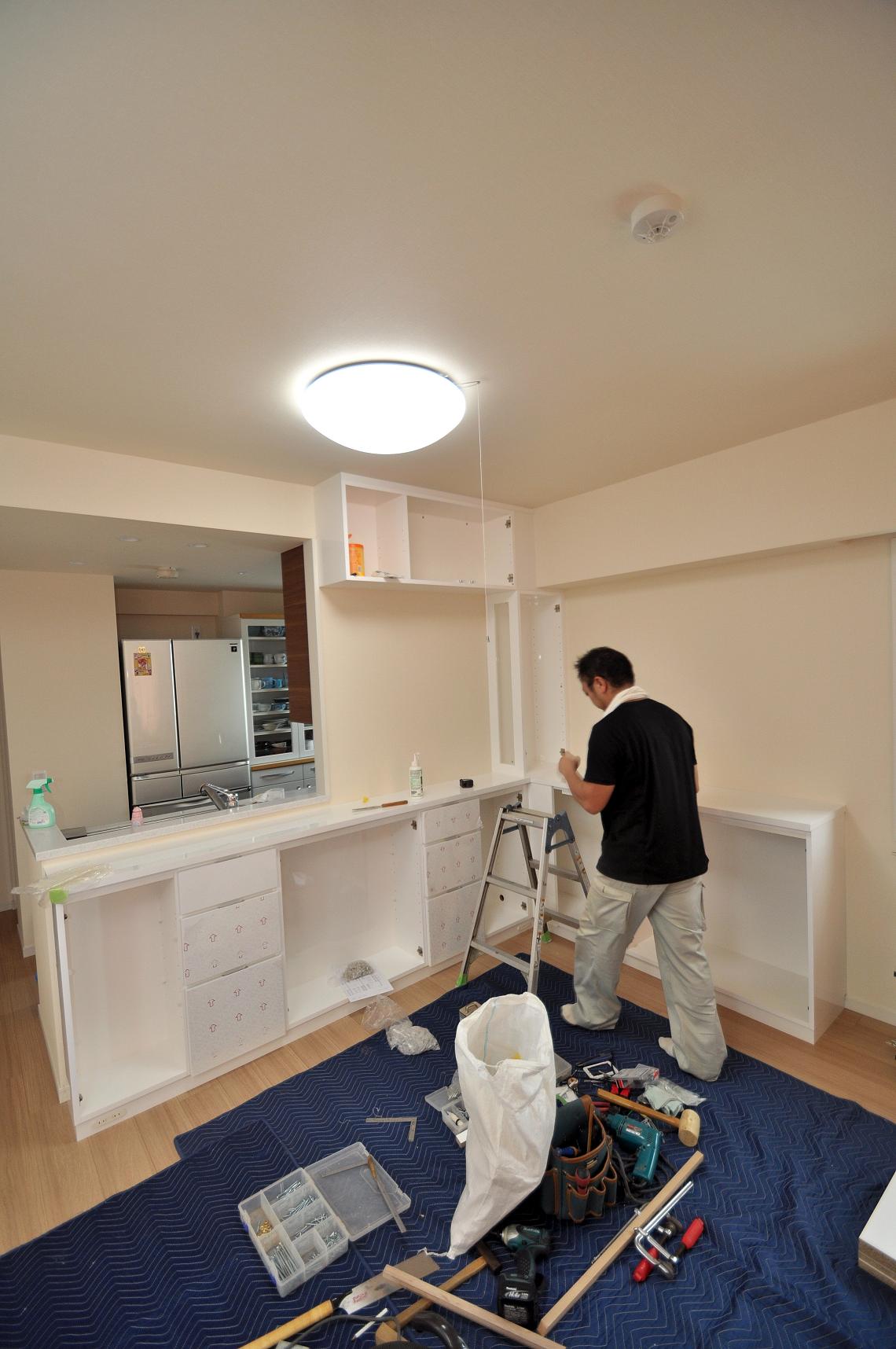西東京市 S邸 リビングボード(リビング壁面収納) 施工状況⑤