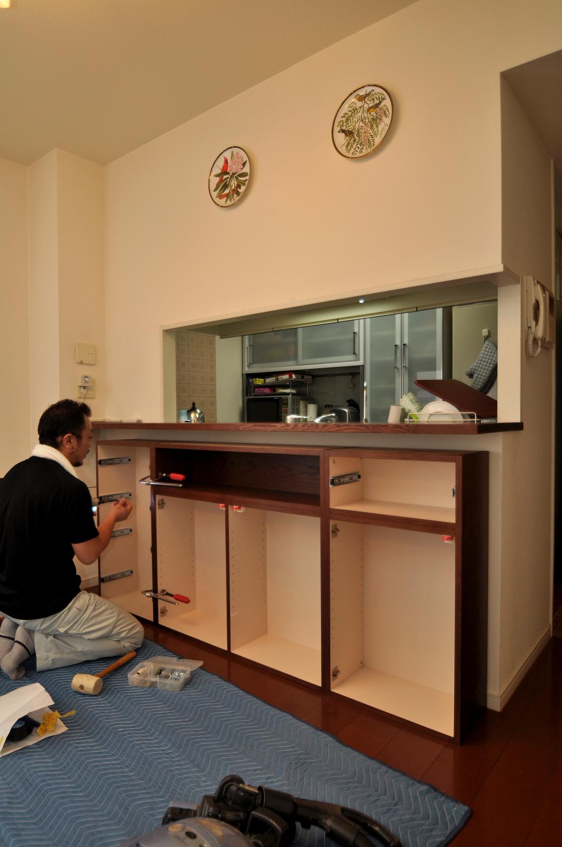 江東区 Y邸 カウンターボード(カウンター下収納) オーダー家具 施工状況②