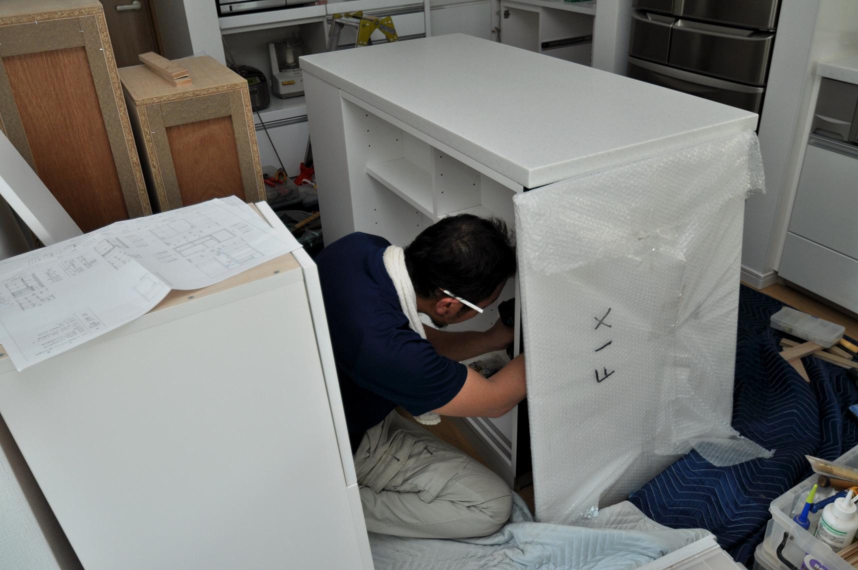 練馬区 T邸 アイランドカウンター(キッチン収納) オーダー家具 施工状況①