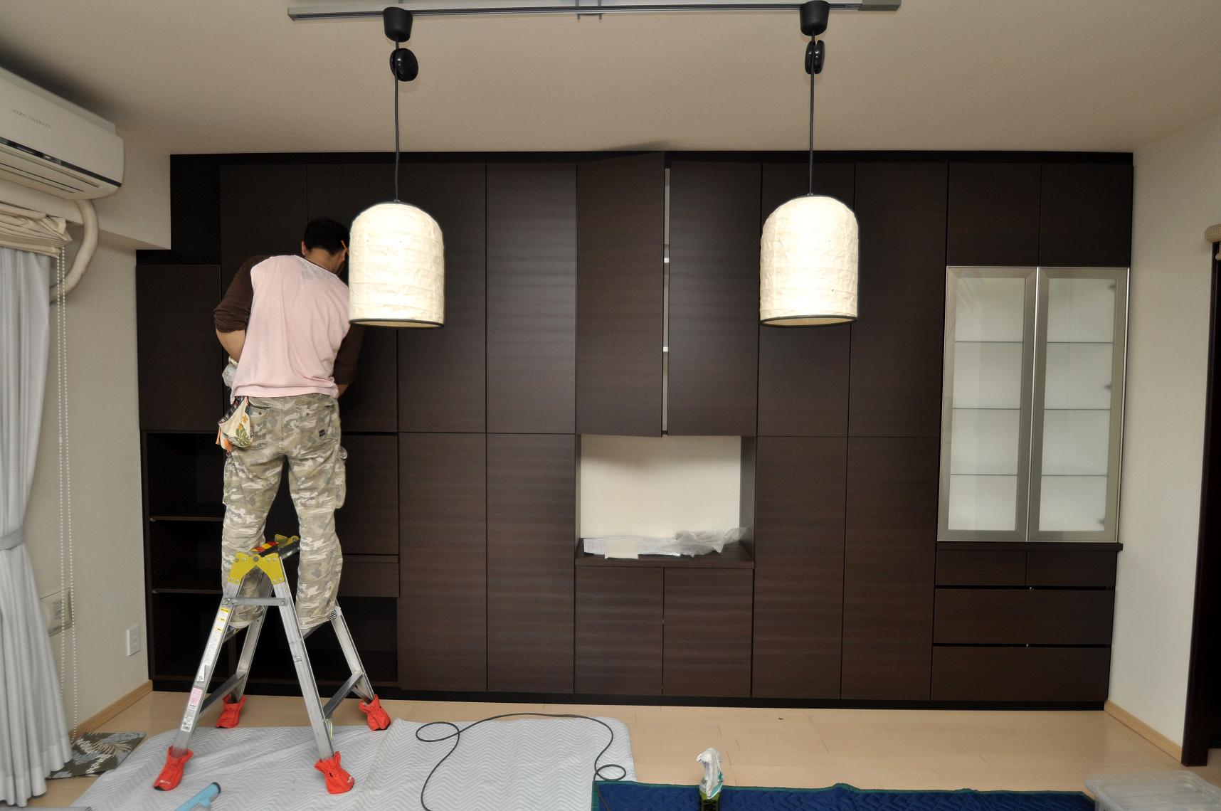 江戸川区 N邸 リビングボード(リビング壁面収納) 施工状況⑤