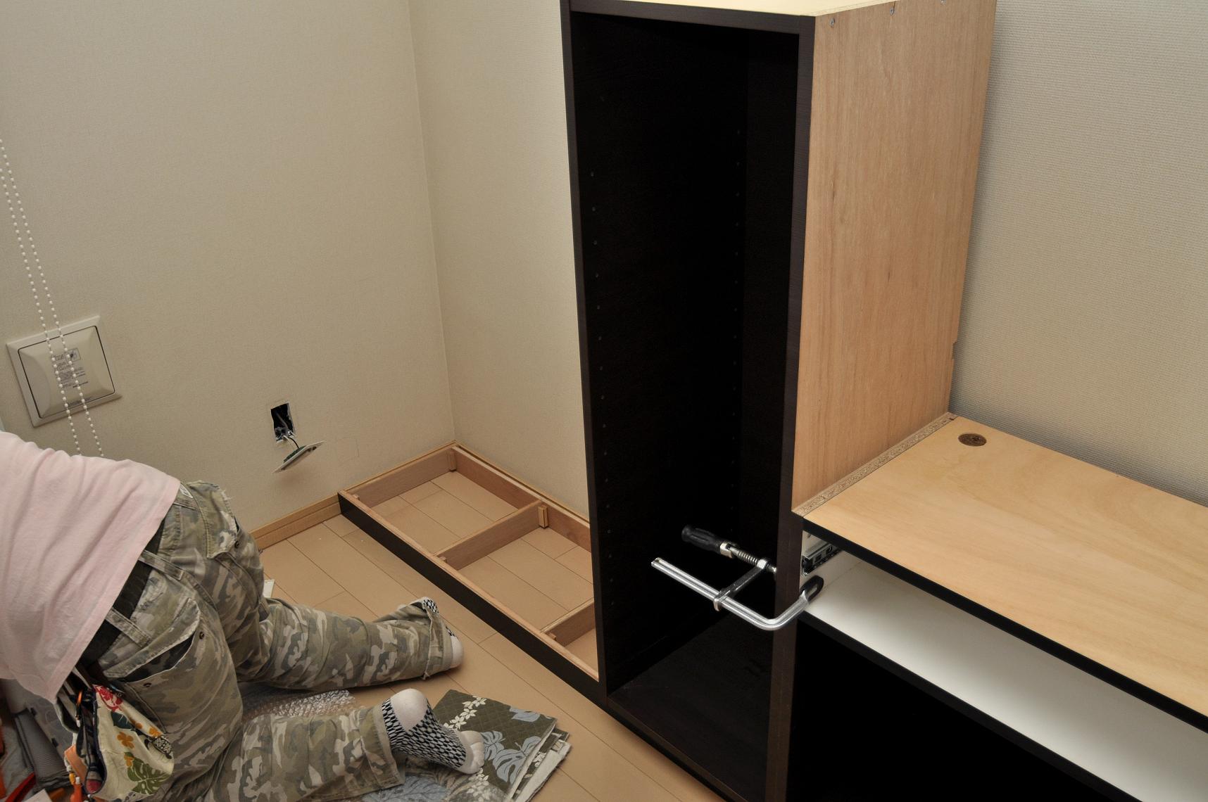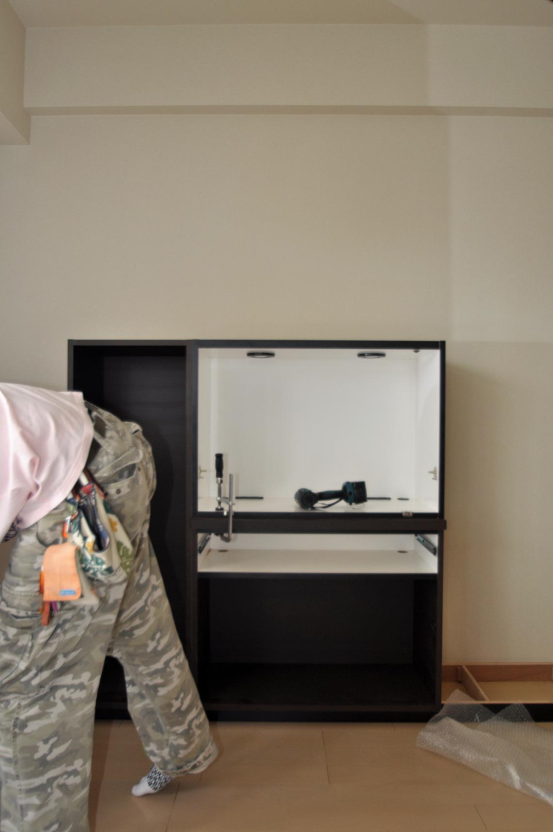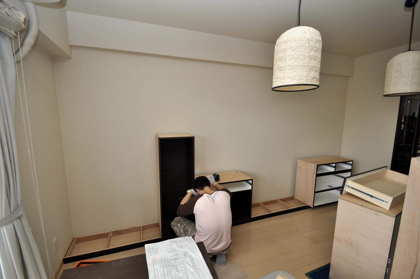 荒川区 N邸 リビングボード(リビング壁面収納) オーダー家具 施工状況①