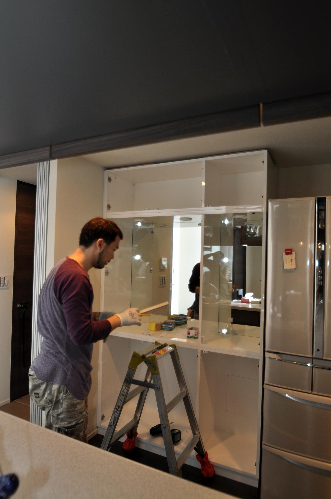 新宿区 A邸 カップボード(キッチン壁面収納) オーダー家具 施工状況③