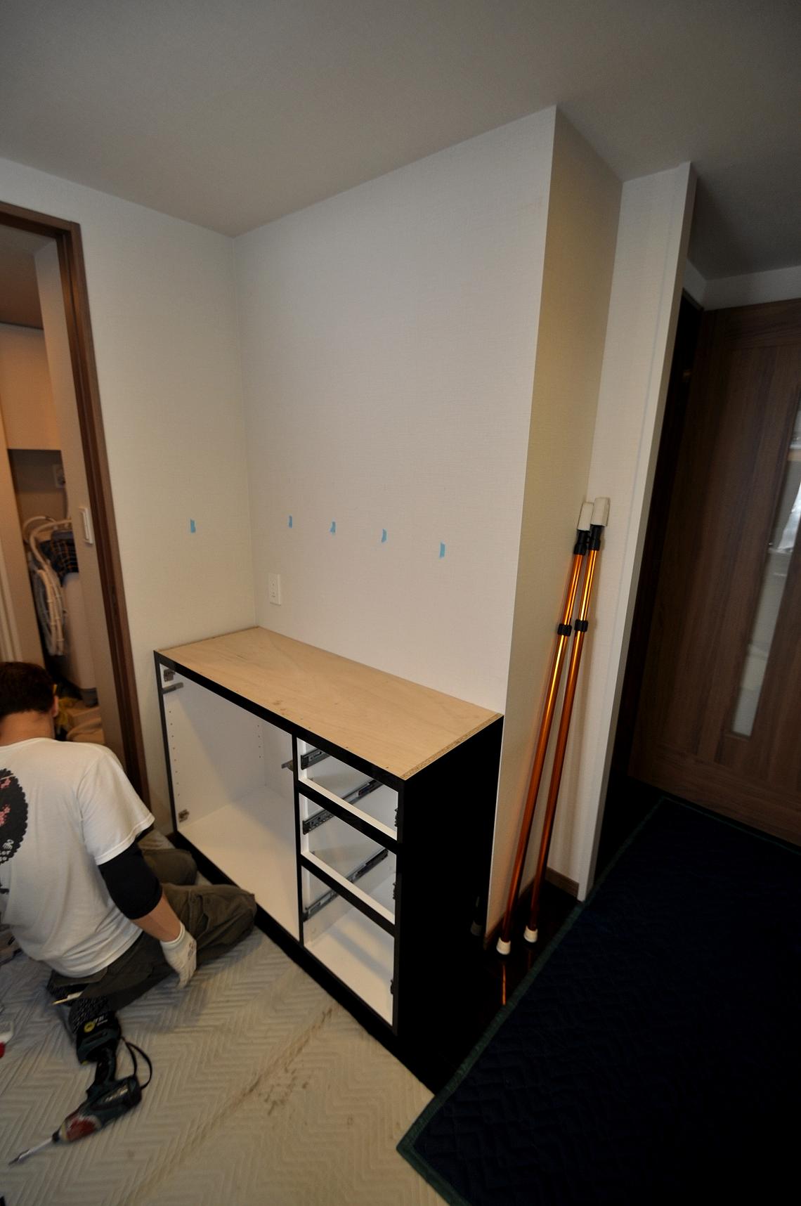 板橋区 T邸 カップボード(キッチン壁面収納) オーダー家具 施工状況①