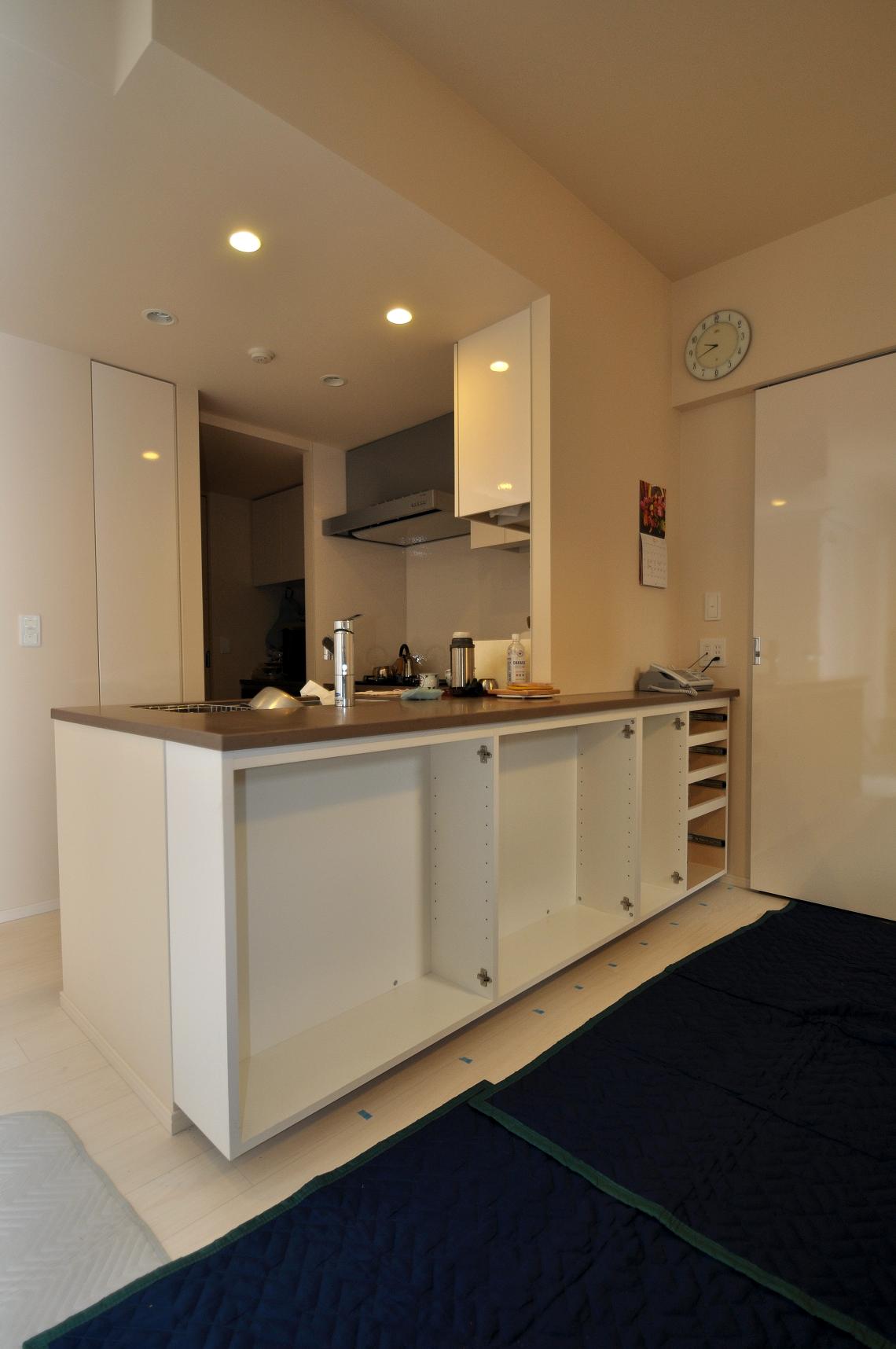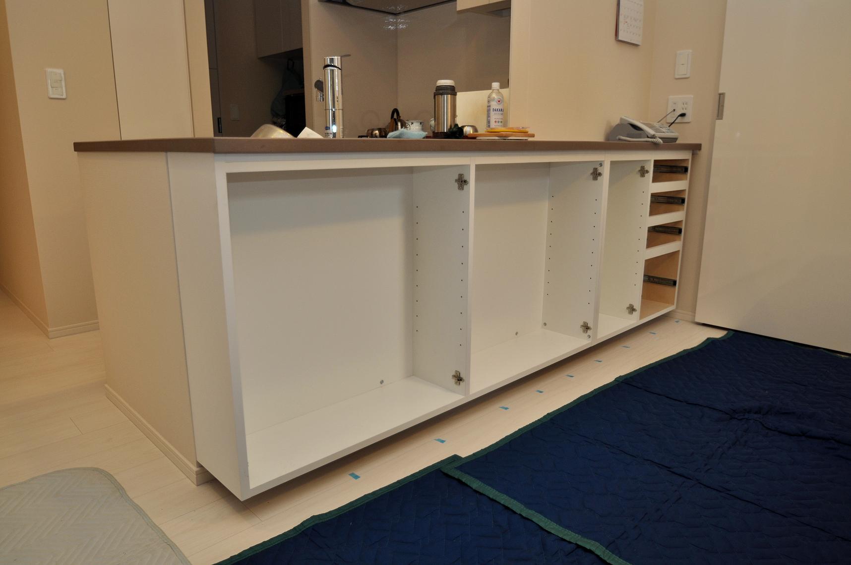 中央区 K邸 カウンターボード/既存カウンター下壁面収納 オーダーメイド家具施工状況②