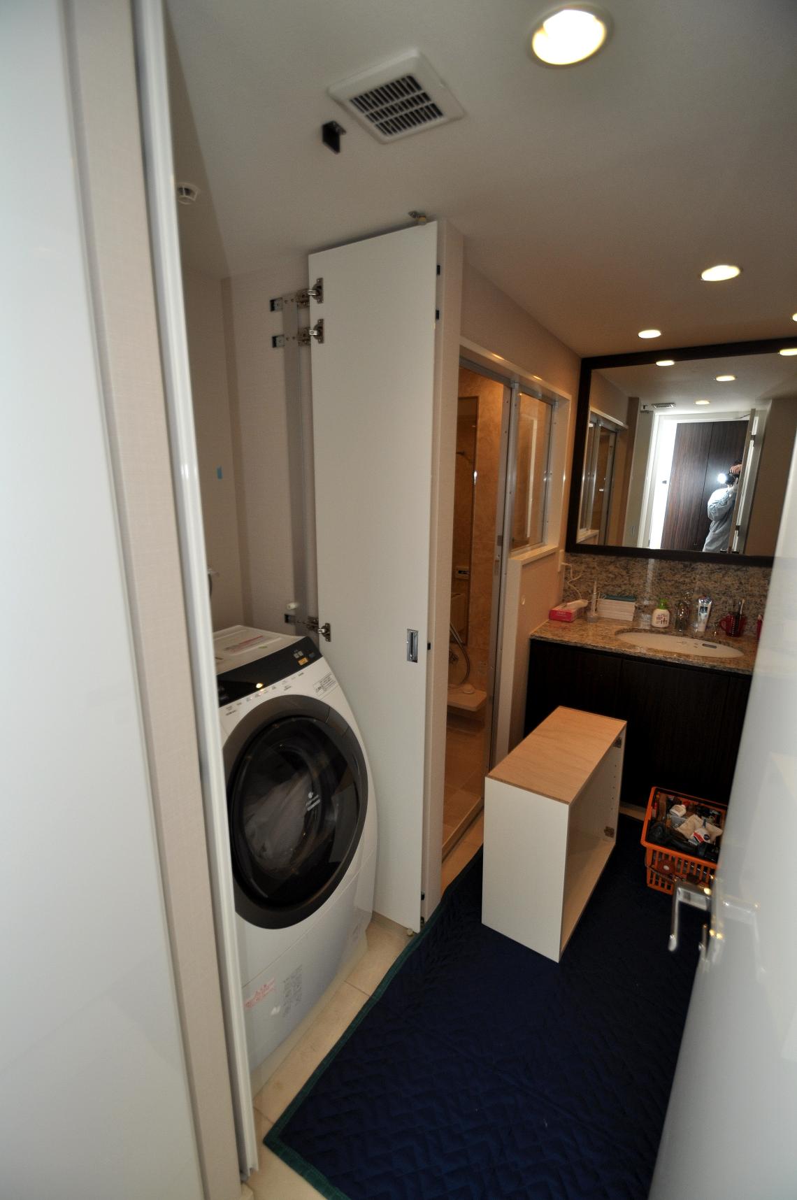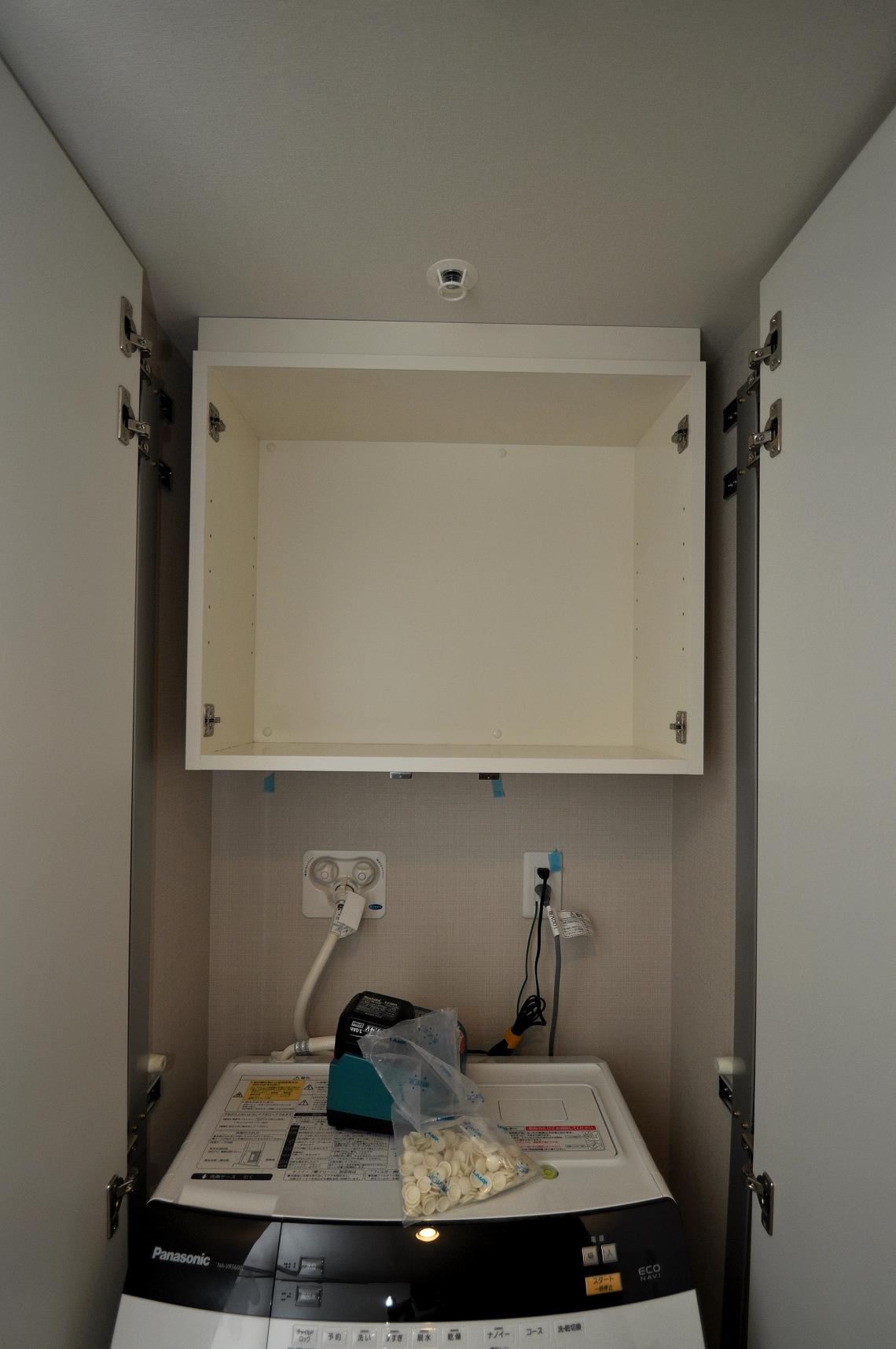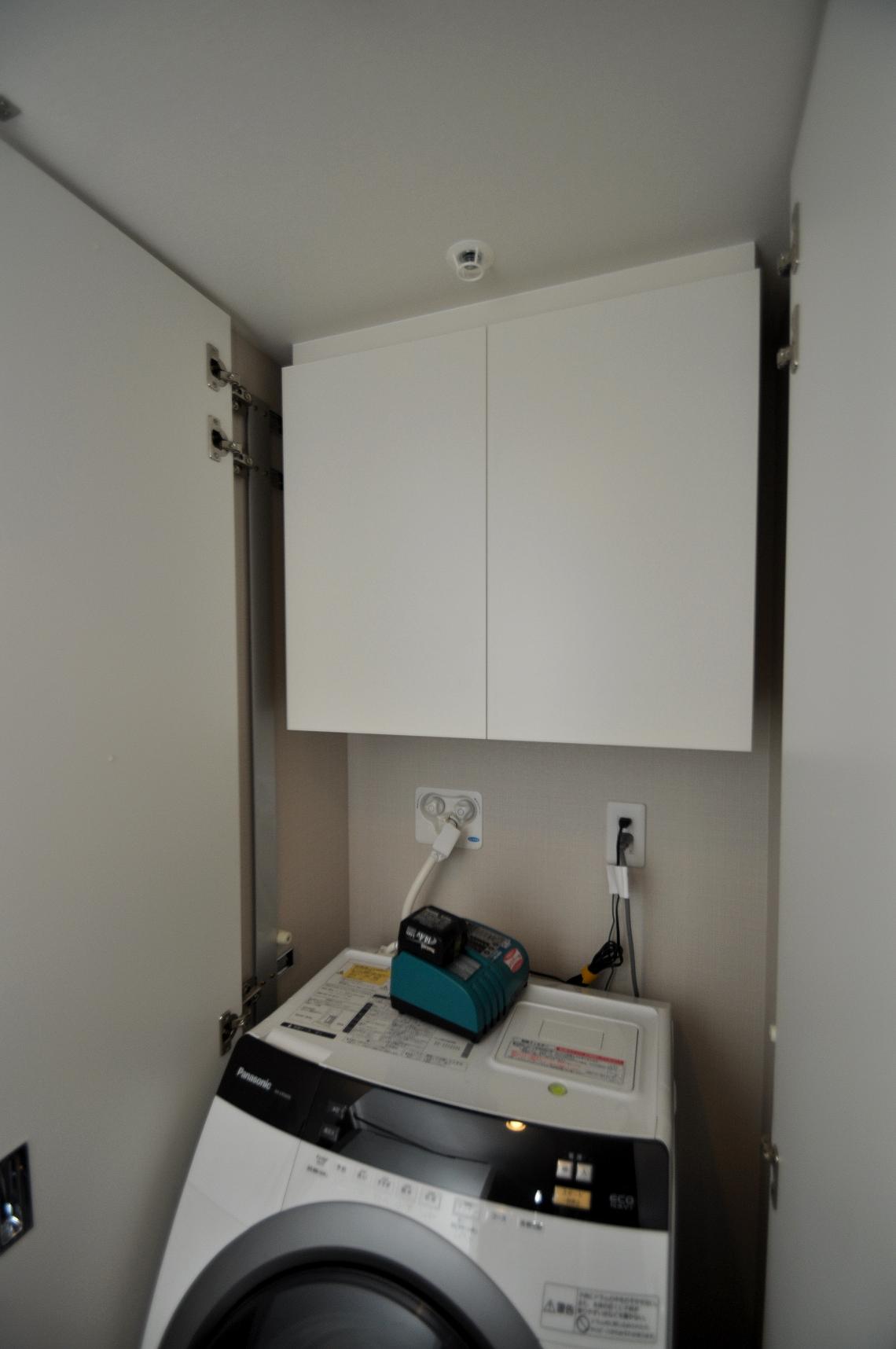 今回の取り付け箇所は既存のフリッパー扉仕様のランドリースペース内部。