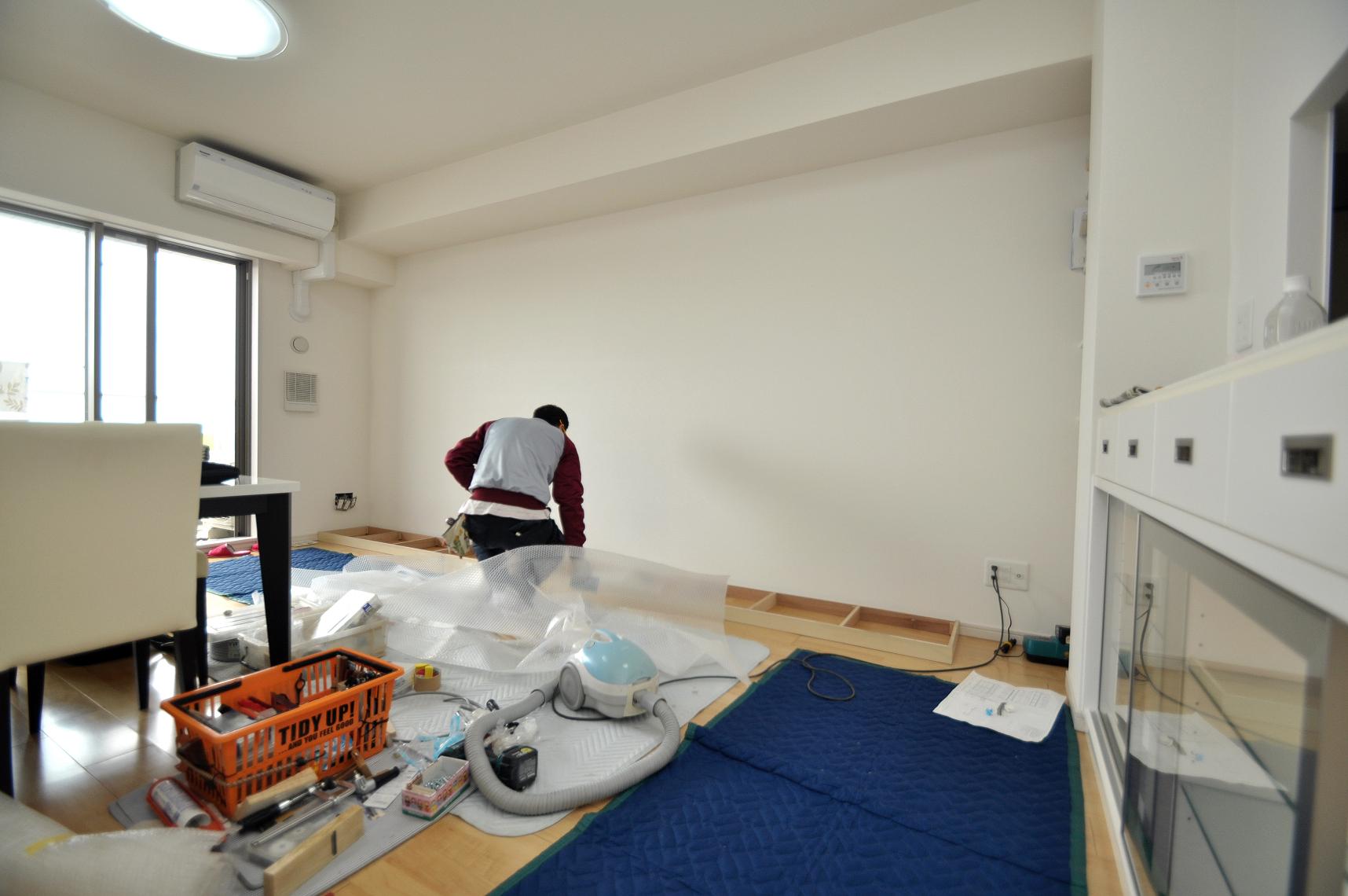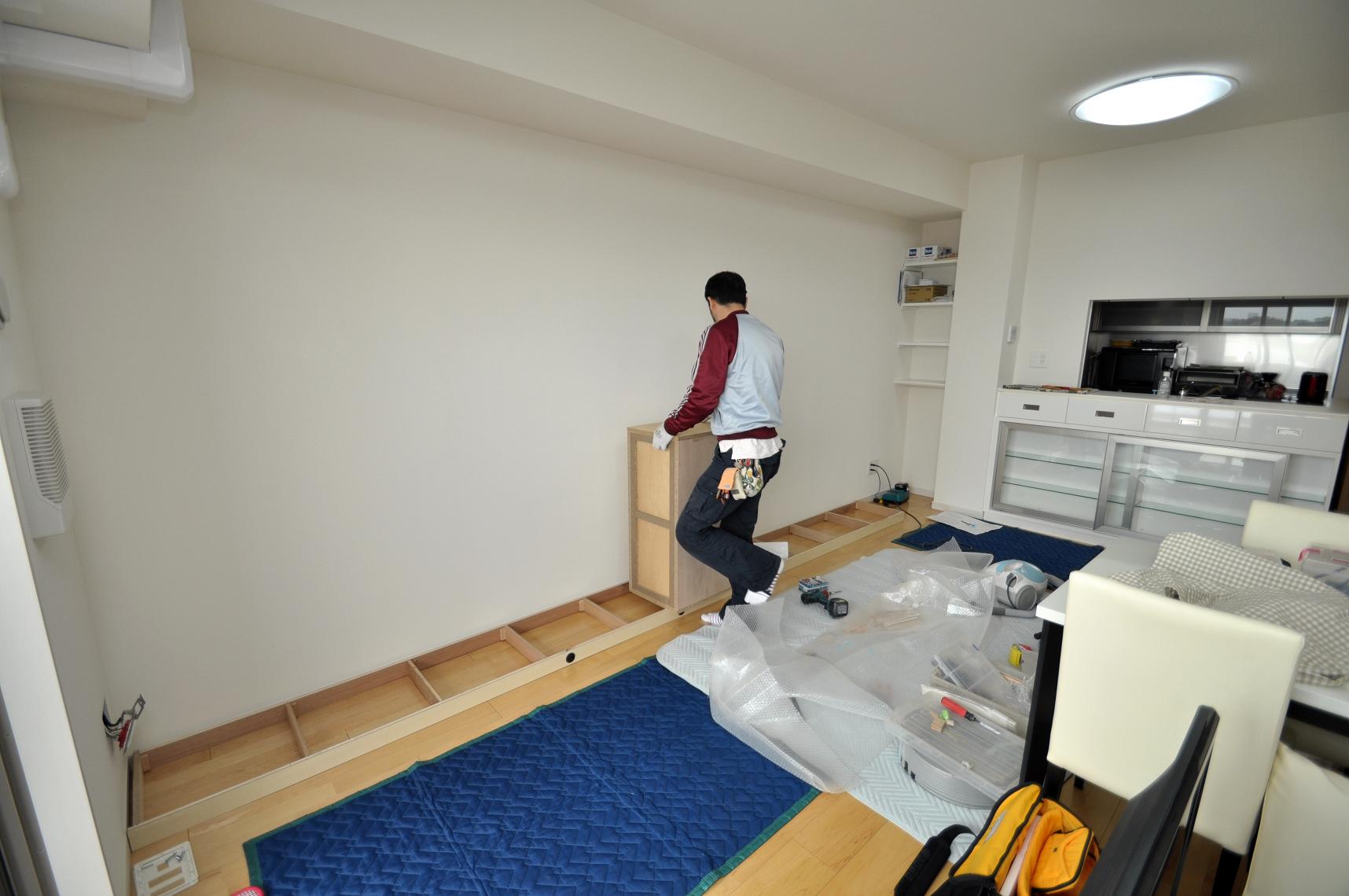 世田谷区 K邸 テレビボード/リビング壁面収納 オーダーメイド家具施工状況 ①