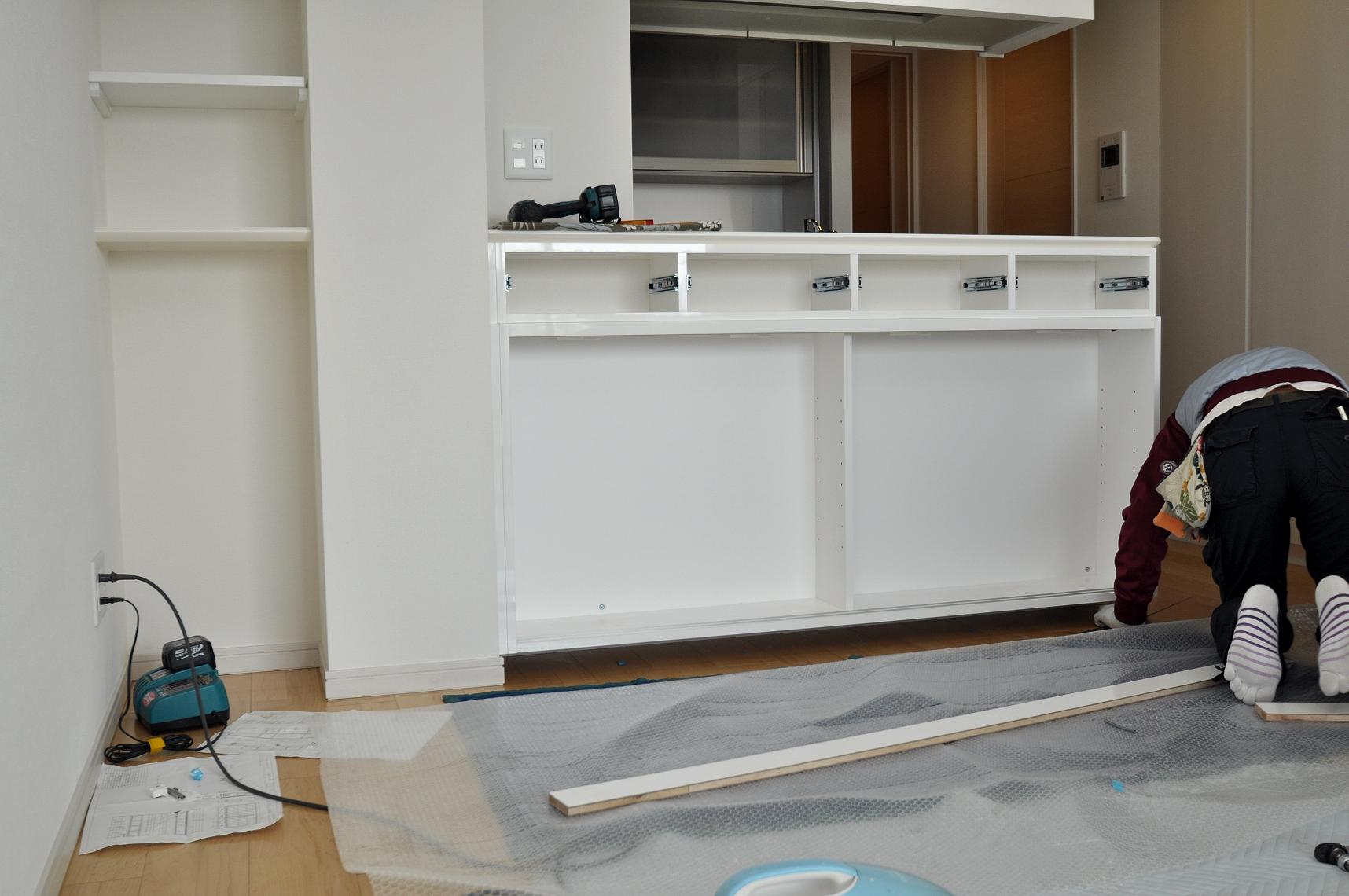 世田谷区 K邸 カウンターボード/既存カウンター下壁面収納 施工状況②