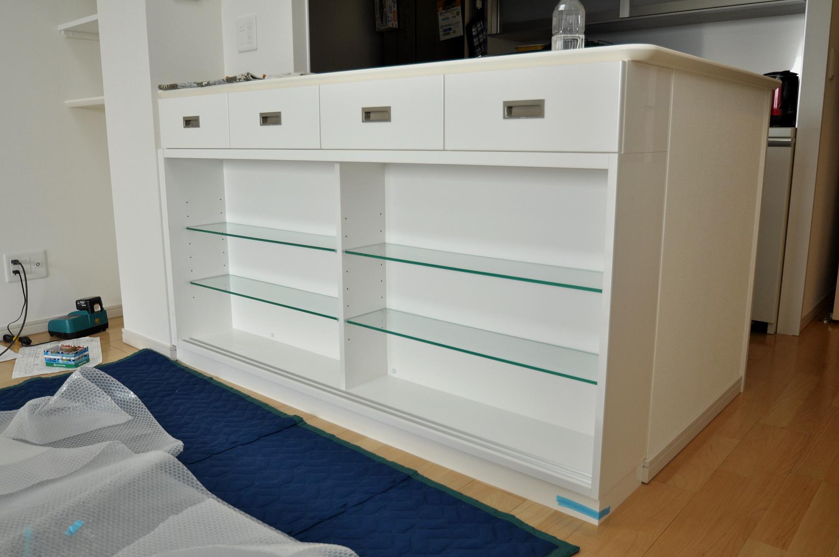 引き出しを納めつつ8mm厚の強化硝子棚板も設置。