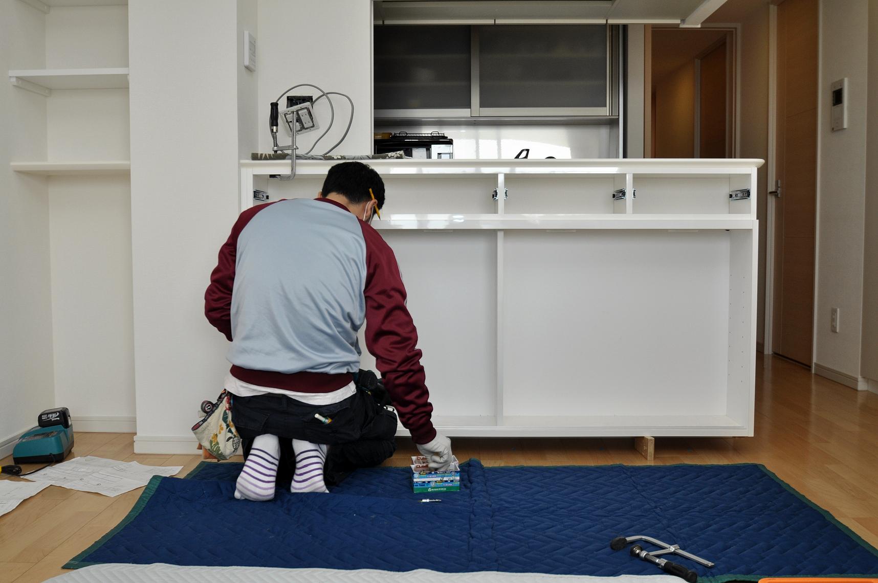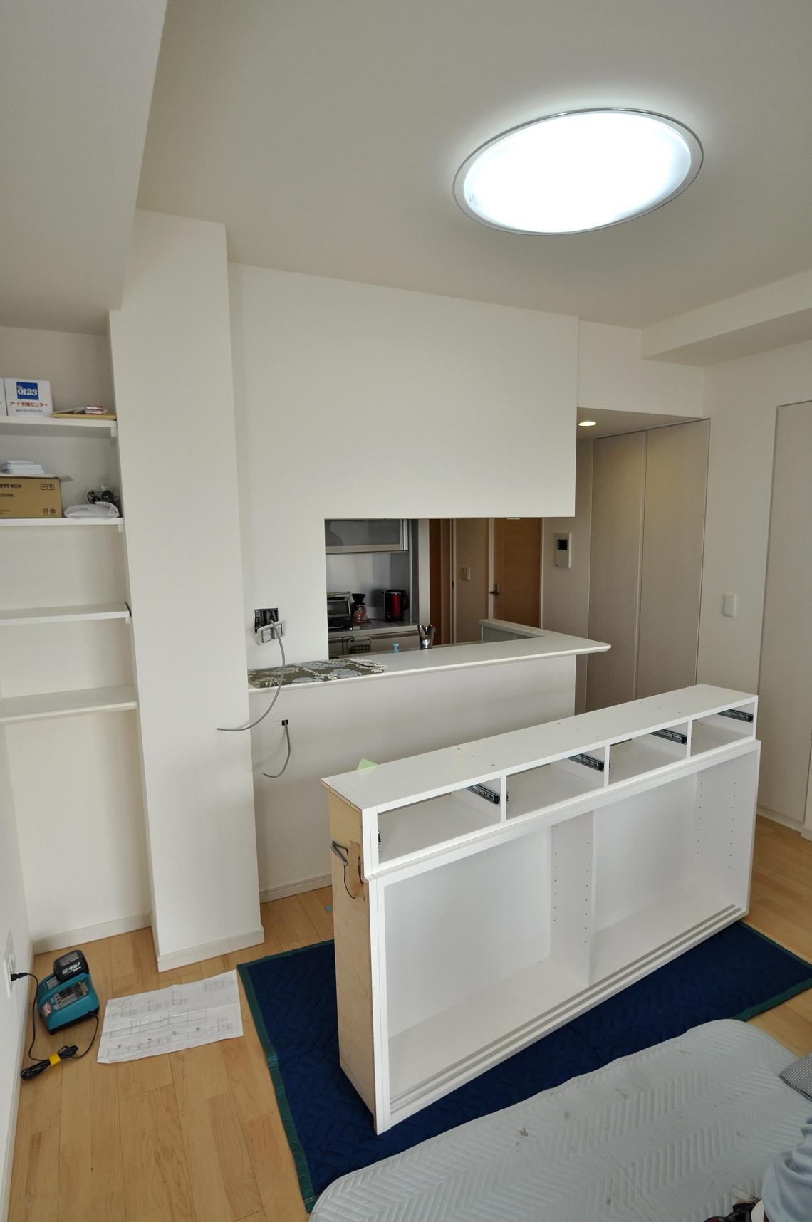 世田谷区 K邸 カウンターボード/既存カウンター下壁面収納 施工状況①