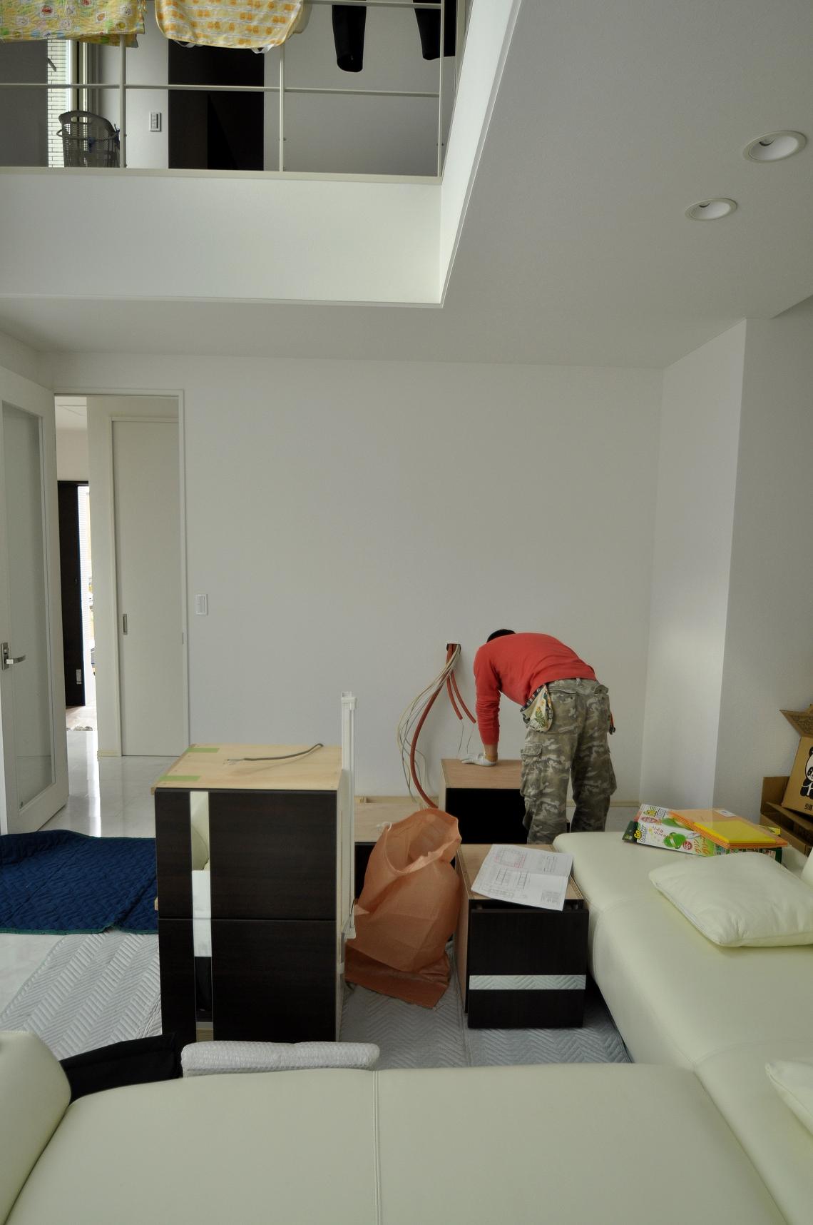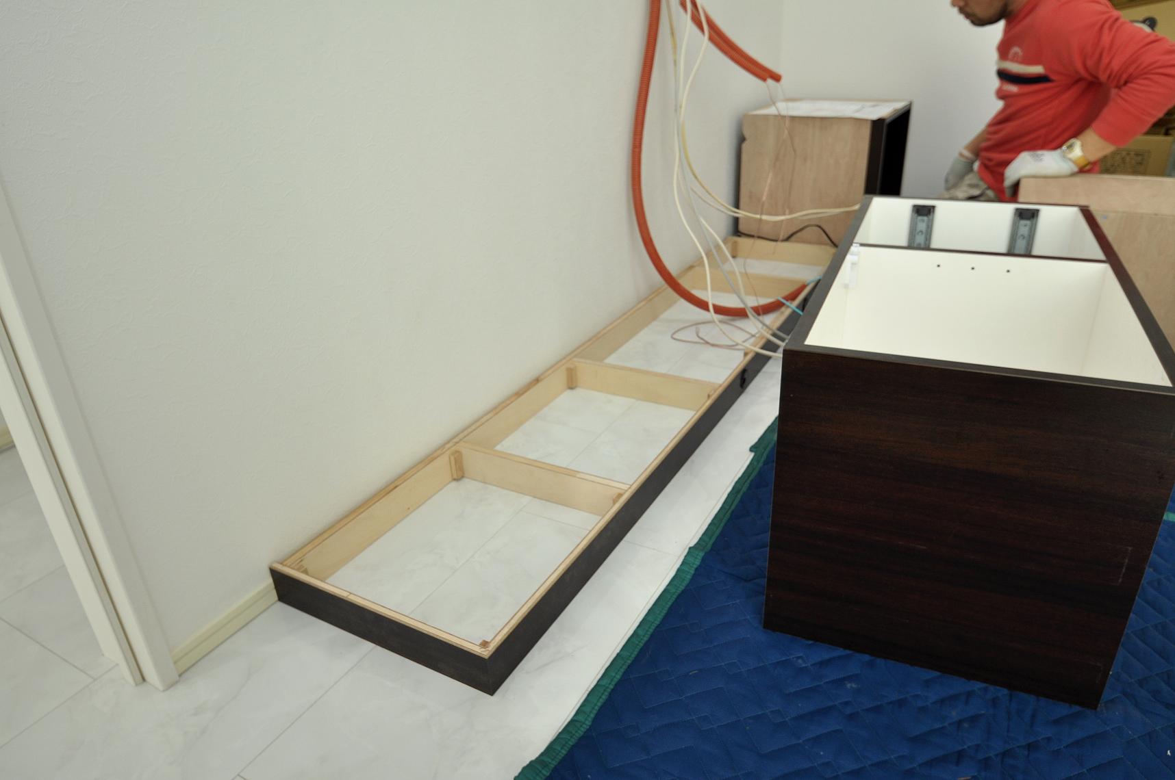 まずはローボード(TVボード)部分の搬入・仕込から。