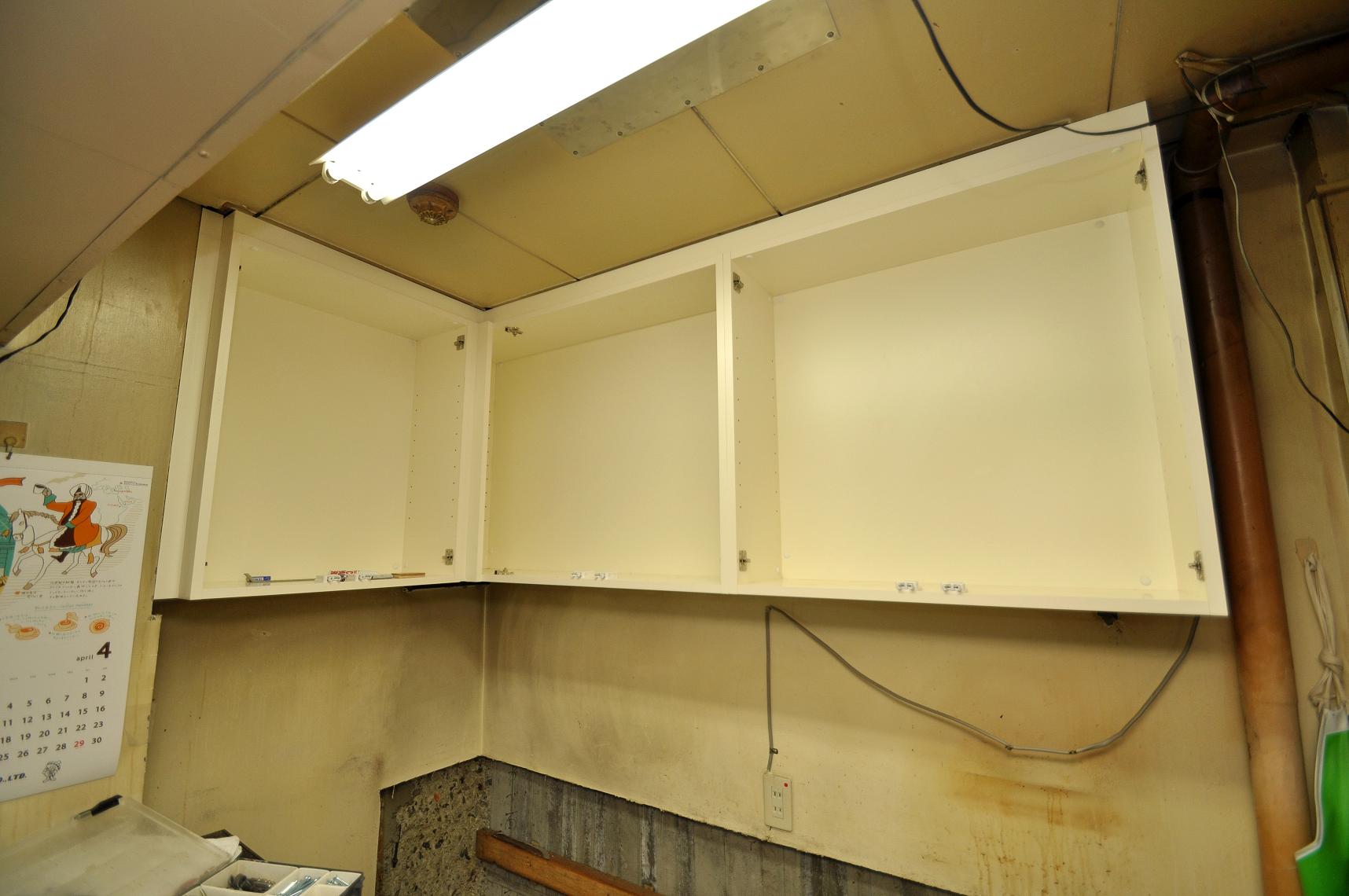 下地を作り終わって正面吊物の連結・固定が完了。
