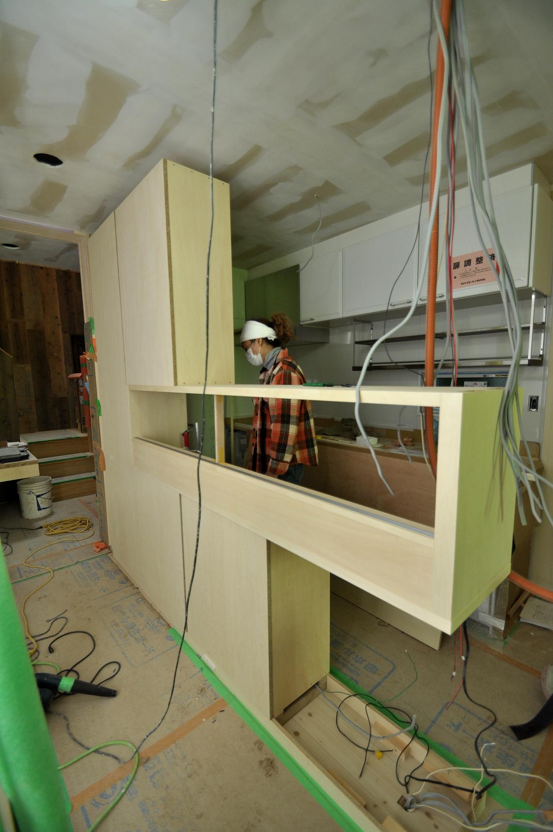 ㈱工房案件 板橋区Y邸 カップボード(キッチン壁面収納) 施工状況 ③