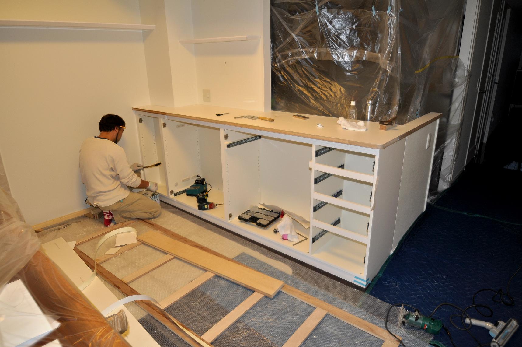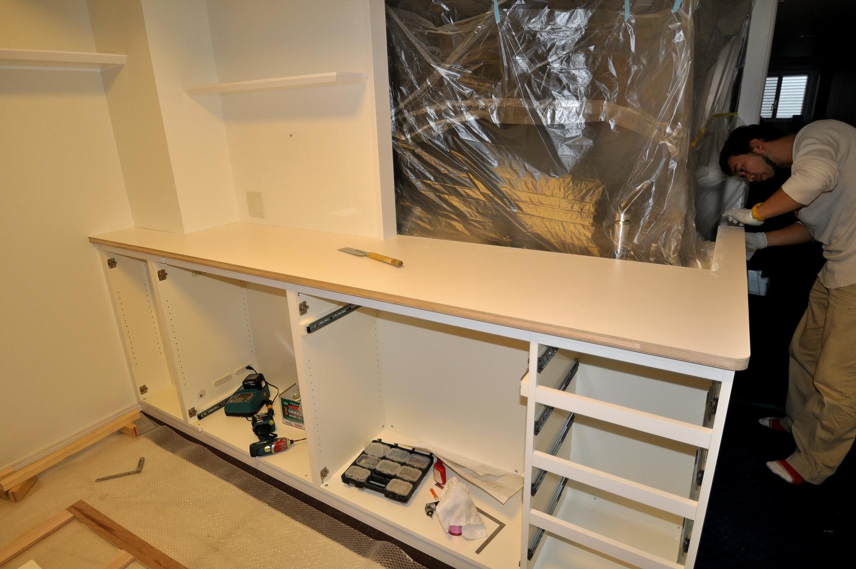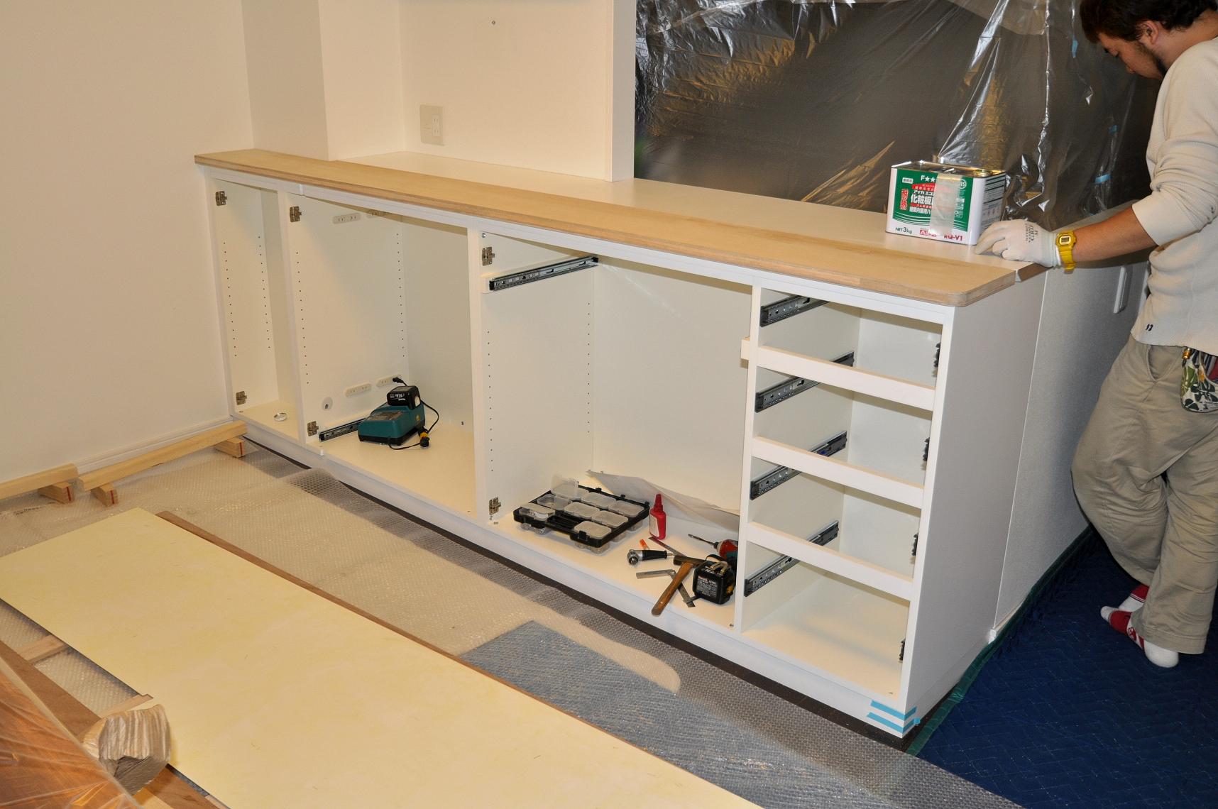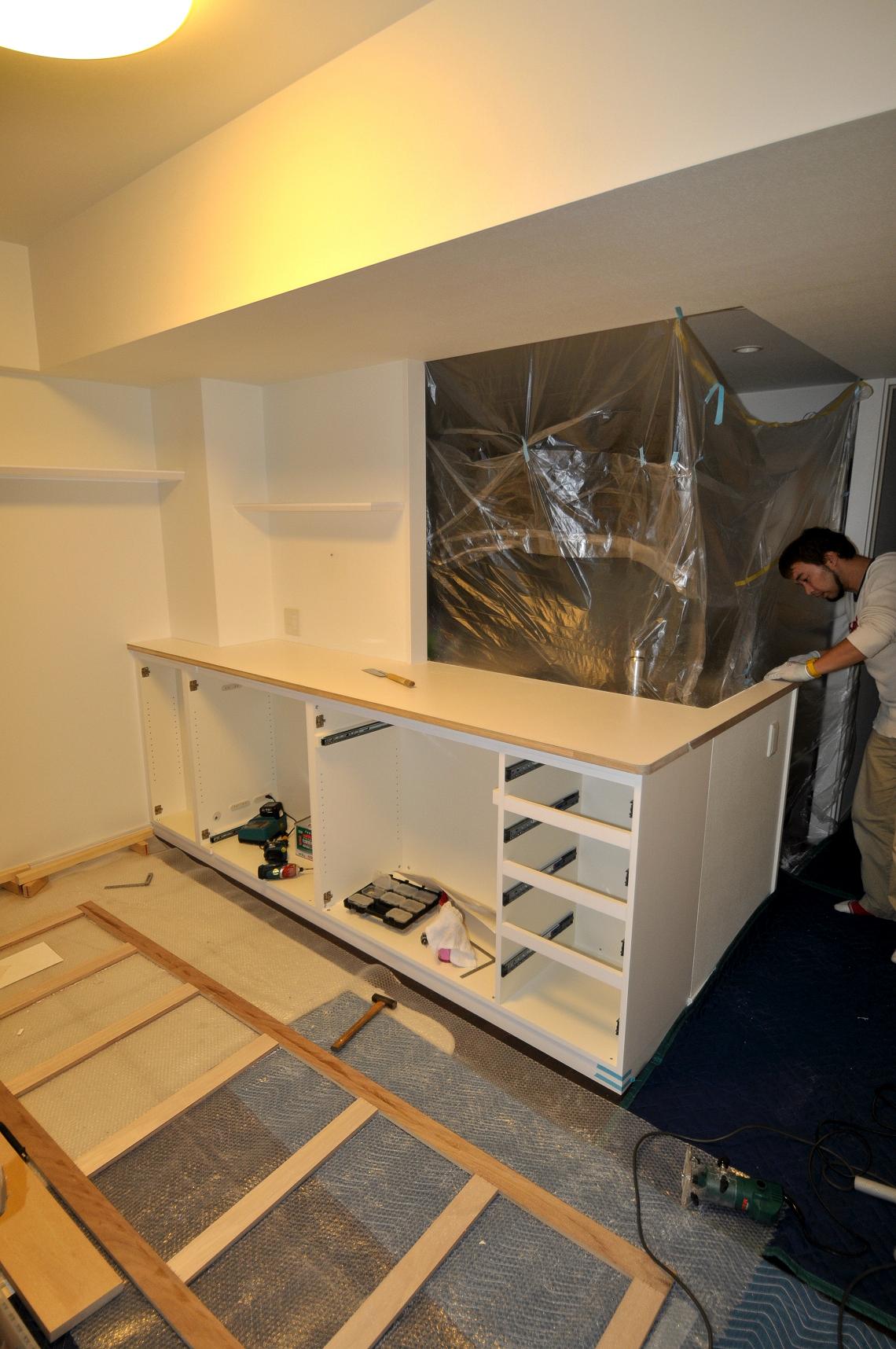 荒川区 I邸 カウンターボード(カウンター下壁面収納) 施工状況 ⑤
