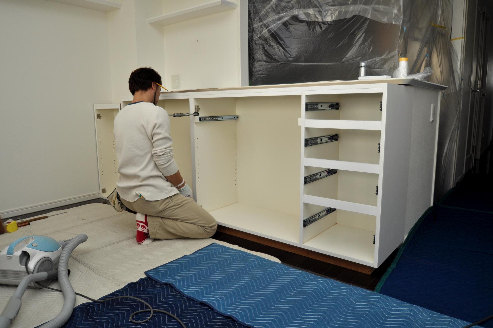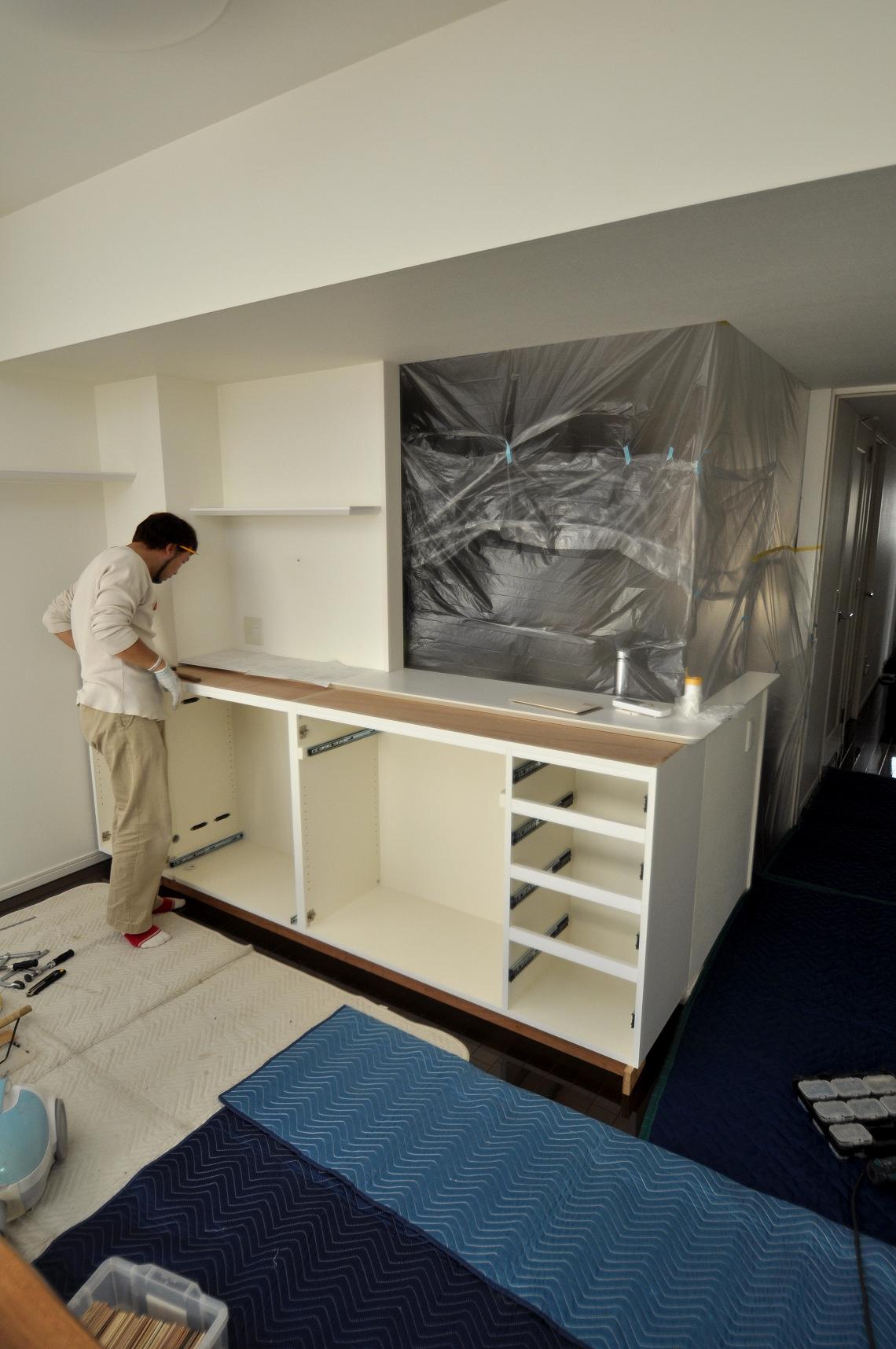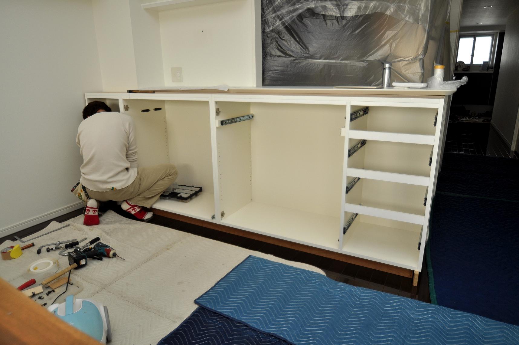 荒川区 I邸 カウンターボード(カウンター下壁面収納) 施工状況 ②