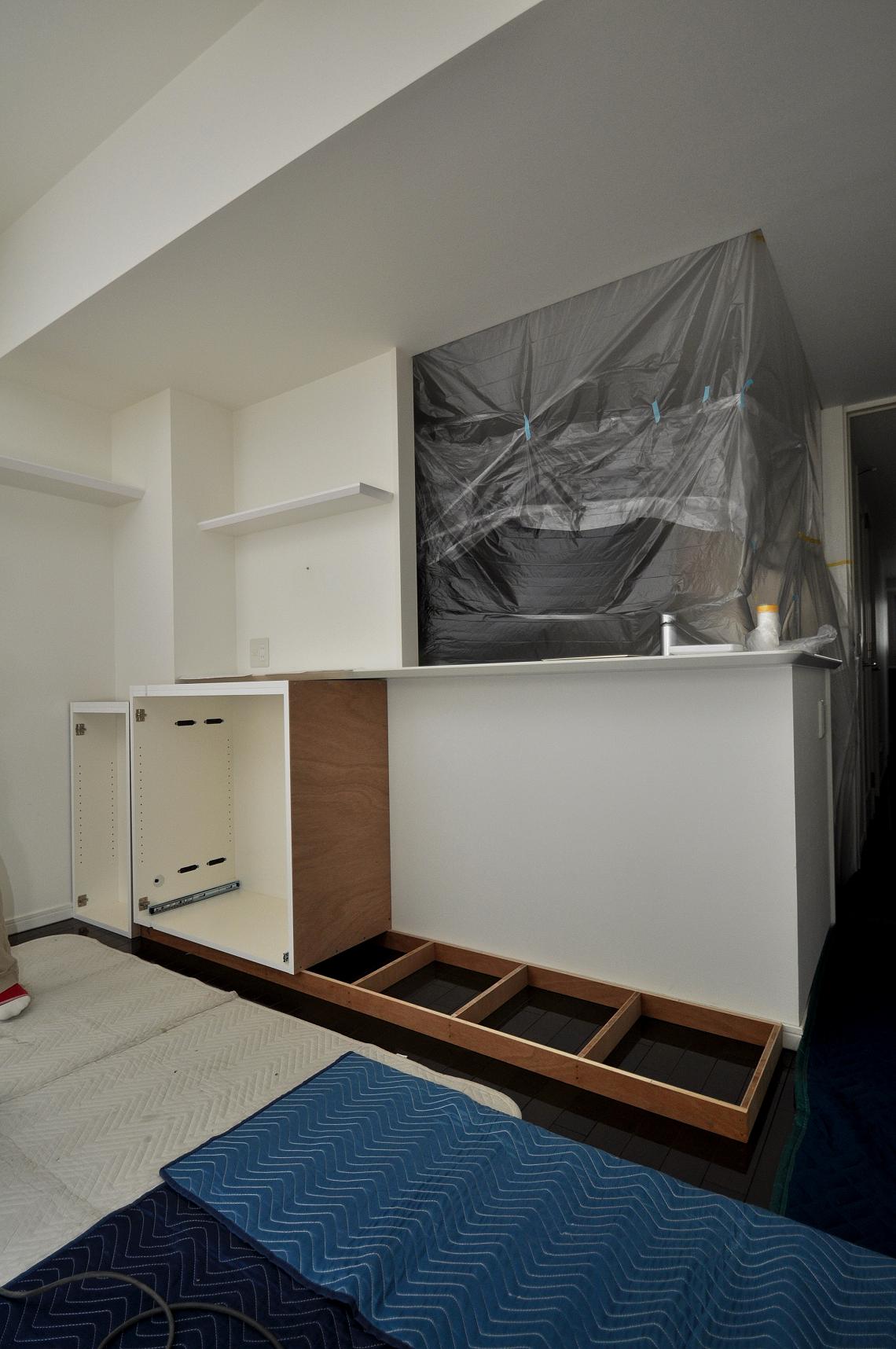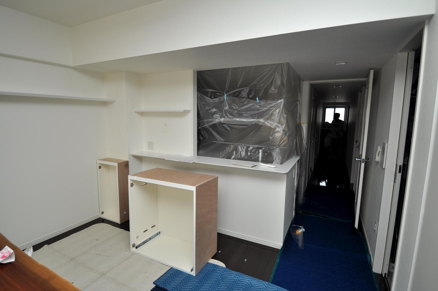 荒川区 I邸 カウンターボード(カウンター下壁面収納) 施工状況 ①