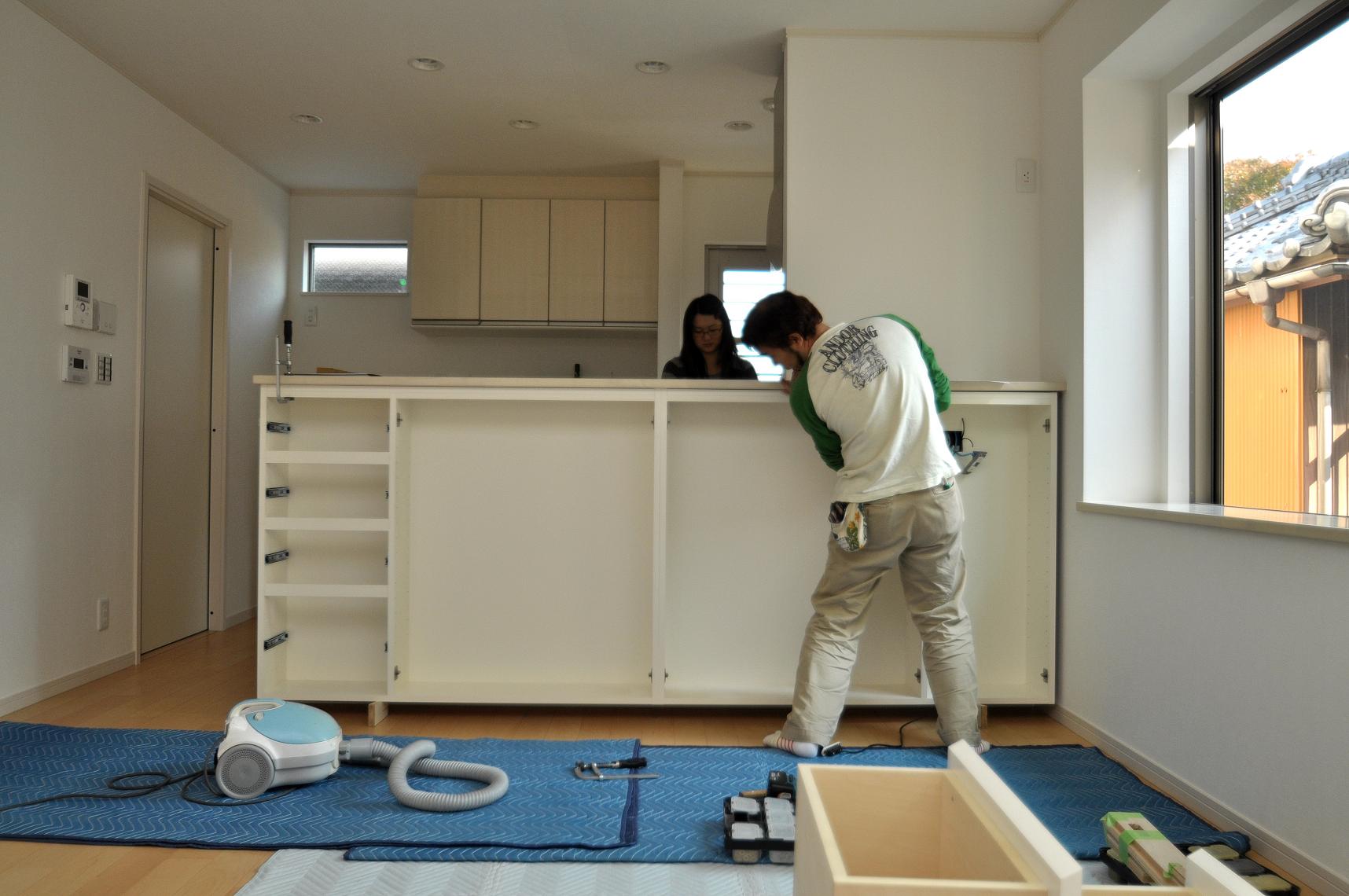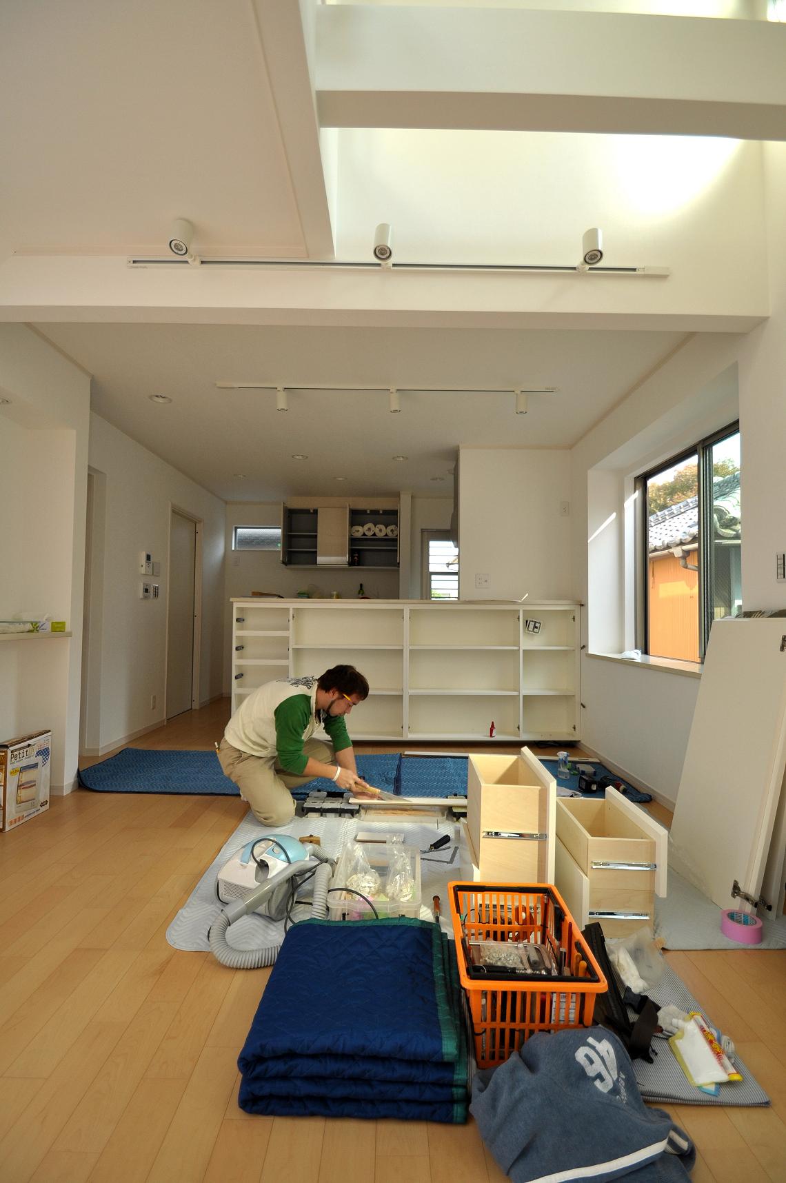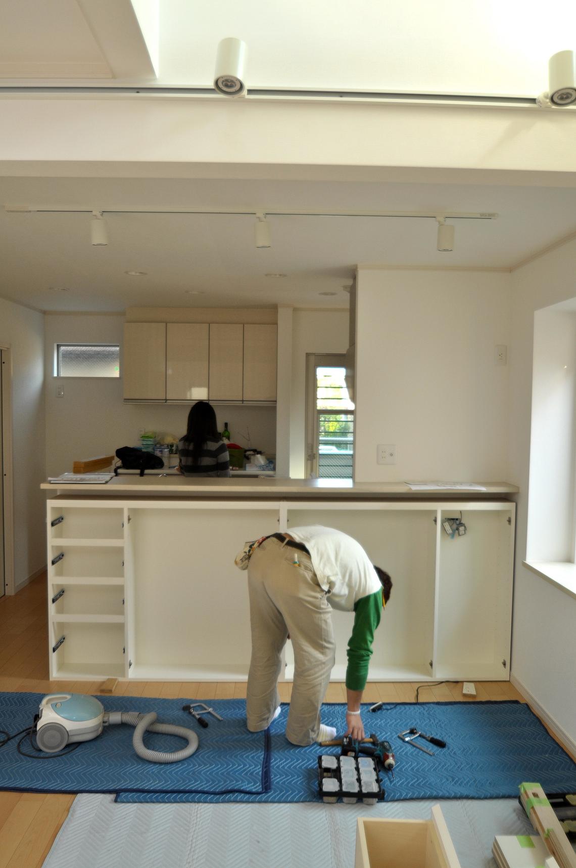品川区 K邸 カウンターボード(カウンター下壁面収納) 施工状況 ②