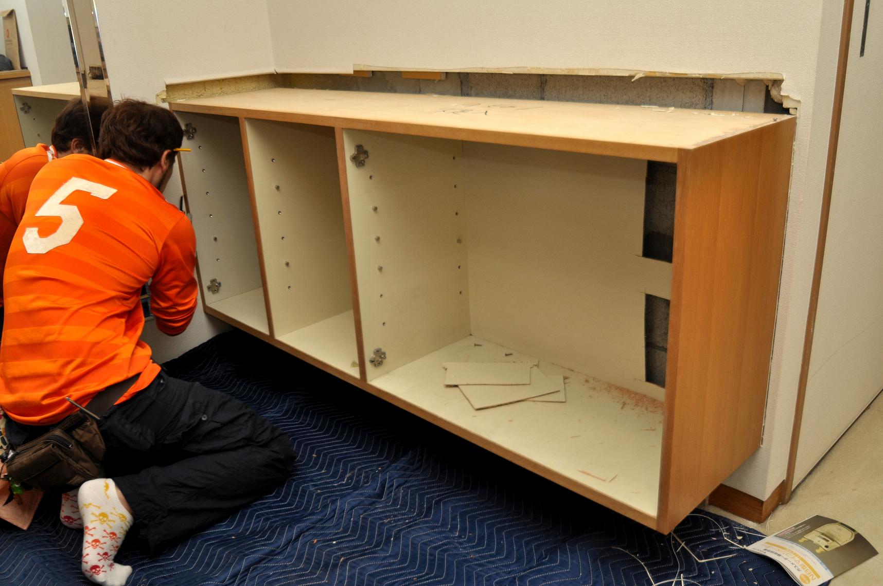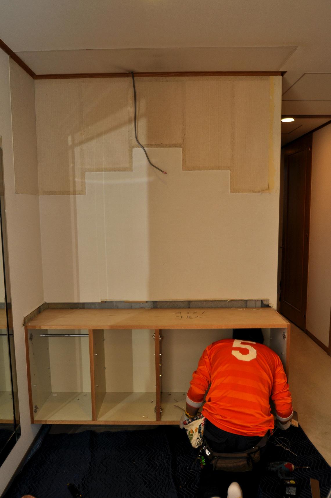 渋谷区 W邸 エントランスボード(玄関壁面収納・下足入れ) 施工状況 ②