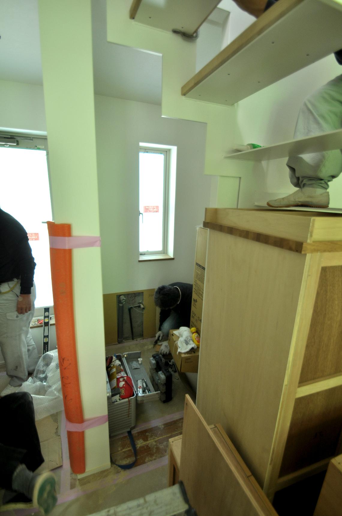 2Fトイレ内カウンター収納の取り付け。