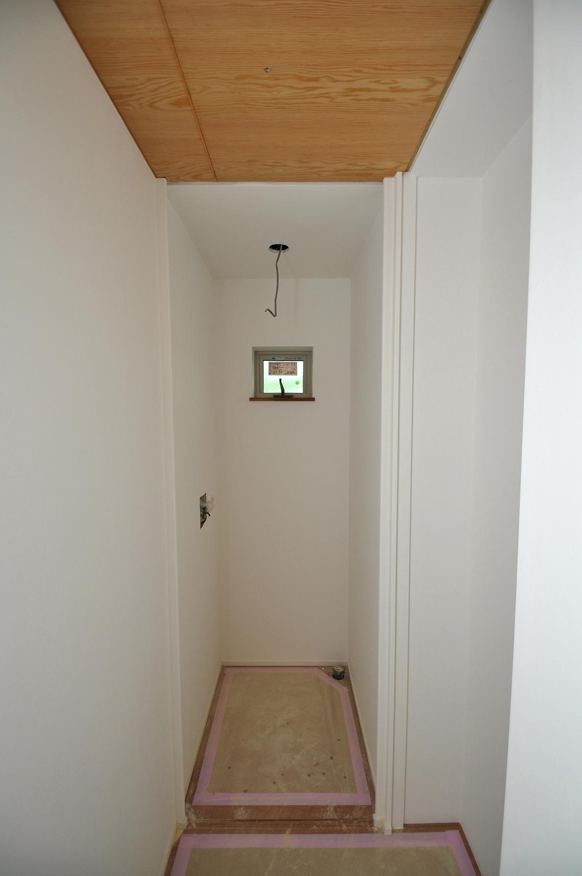 洗濯機パンが下場にこの壁面には固定棚板を施工予定。
