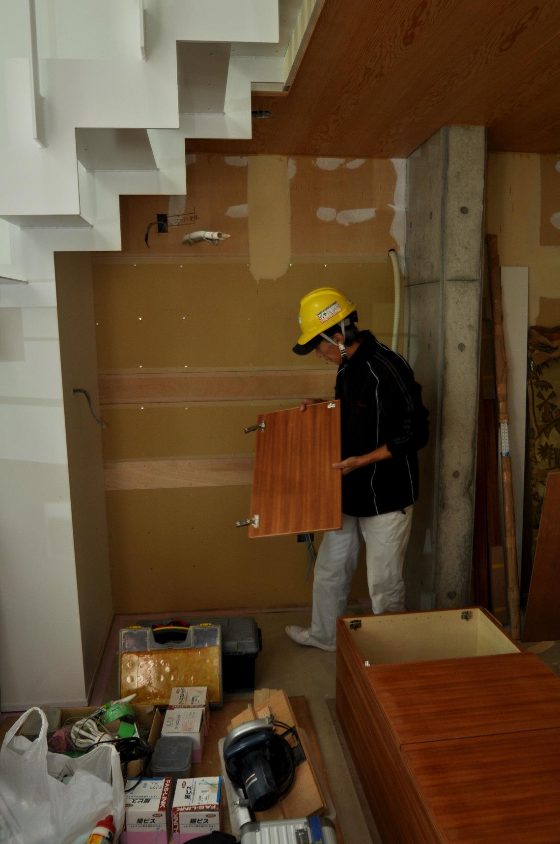 こちらにはダボ柱を立てて可動棚板の施工。