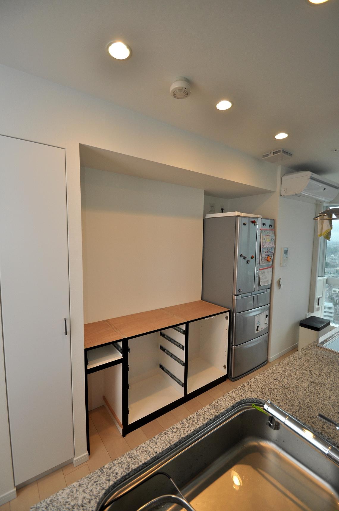 柏市 K邸 カップボード(キッチン壁面収納) 施工状況 ②