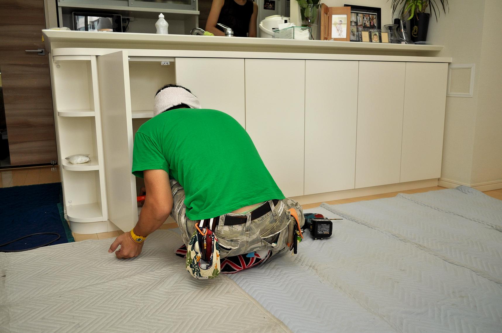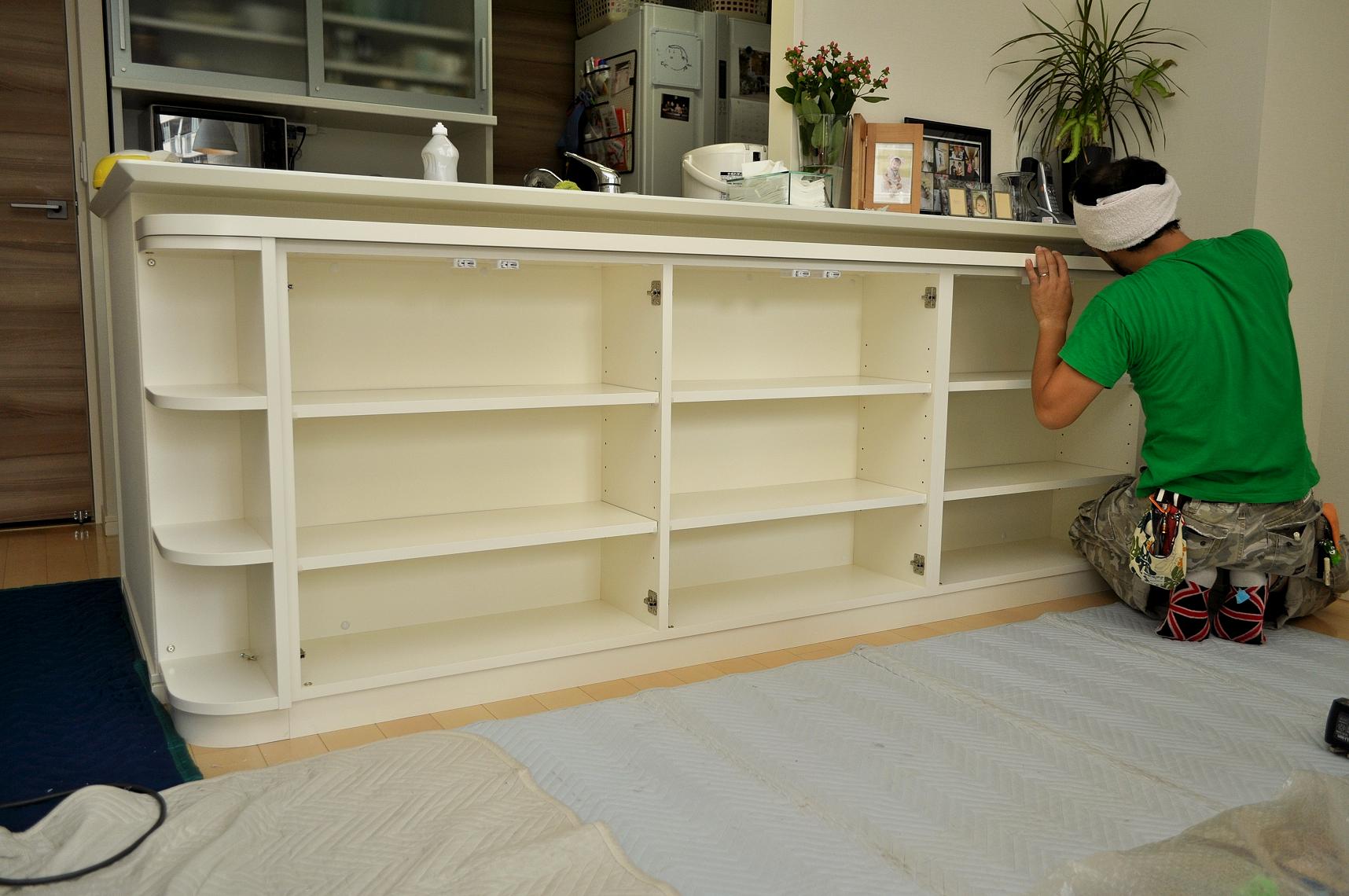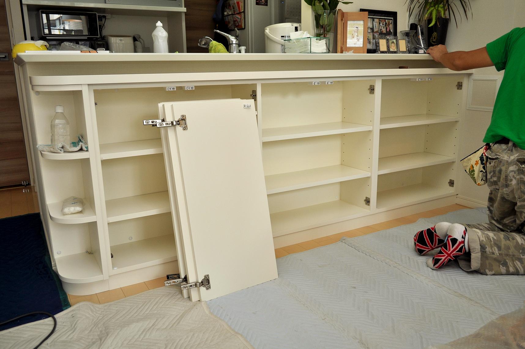 荒川区 T邸 カウンターボード(既存カウンター下壁面収納) 施工状況 ③