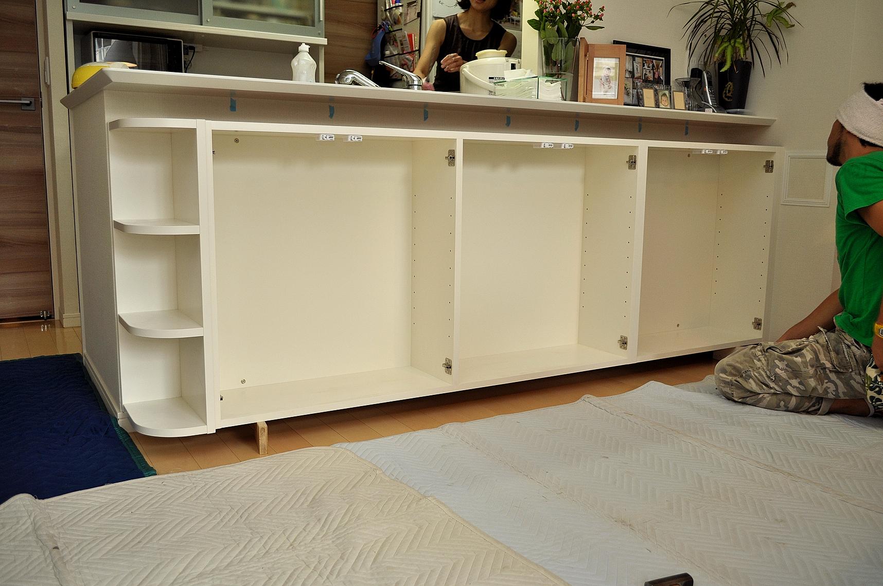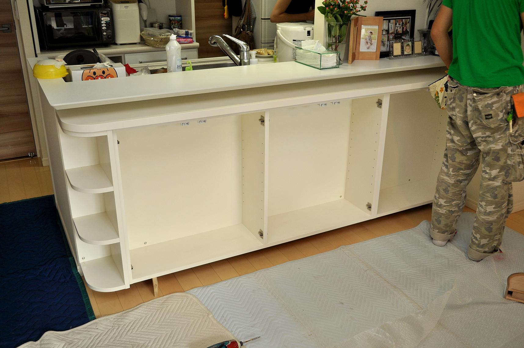 荒川区 T邸 カウンターボード(既存カウンター下壁面収納) 施工状況 ②