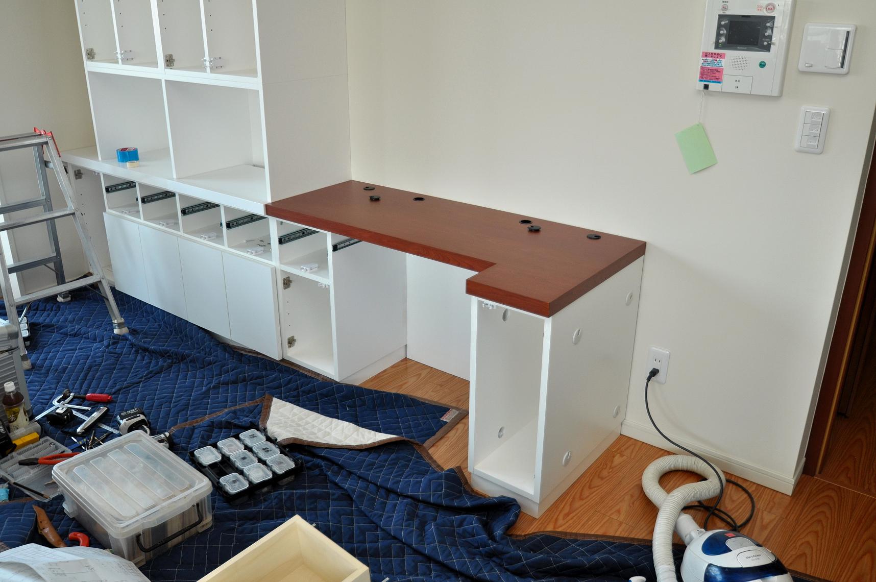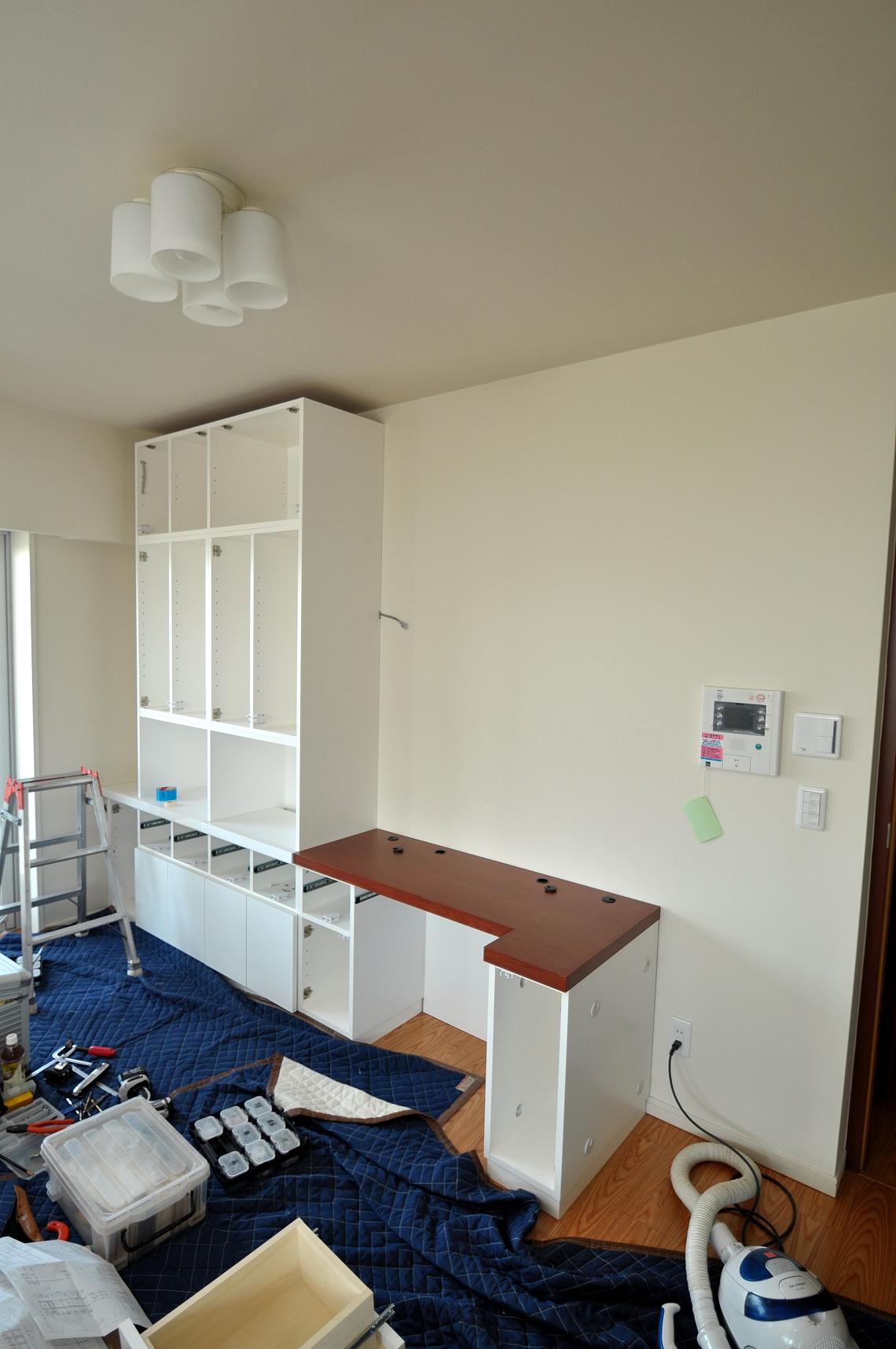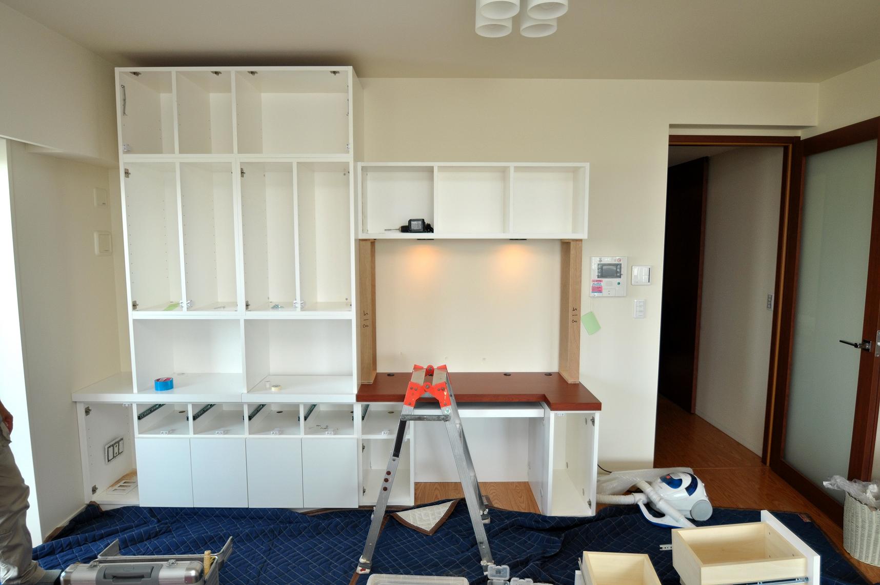 江東区 T邸 リビングボード(デスク付壁面収納) 施工状況 ④