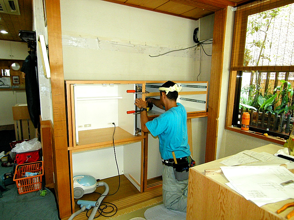 市川市 K邸 和室壁面収納(リビングボード) 施工状況 ②