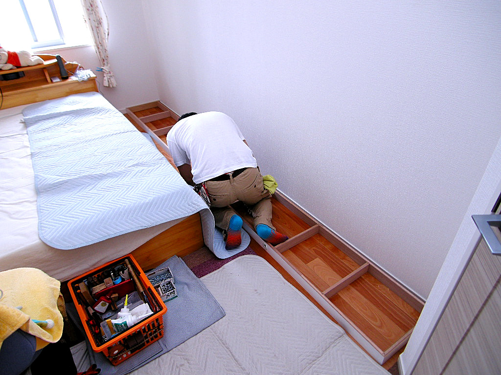川口市 M邸 マルチメディアボード(洋室壁面収納)施工状況 ①