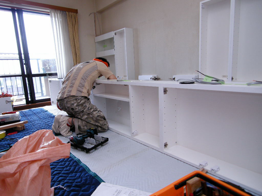 川口市 K邸 リビングボード(リビング壁面収納) 施工状況 ③
