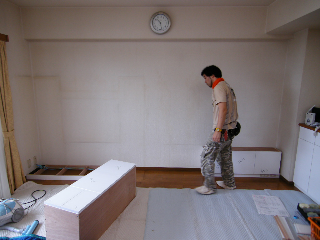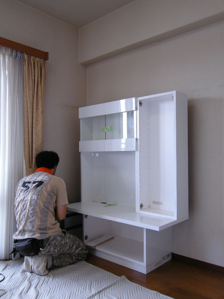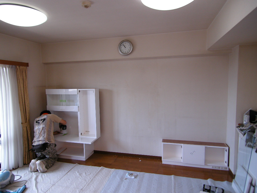 川口市 K邸 リビングボード(リビング壁面収納) 施工状況 ②