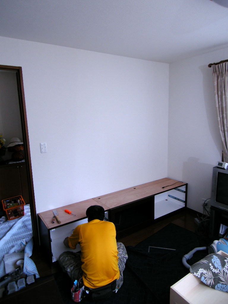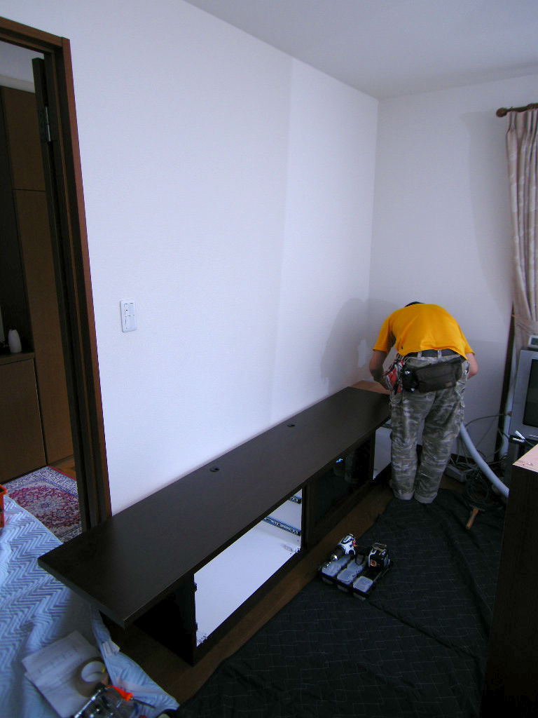 テレビボード全体の仮置き・レベル調整。