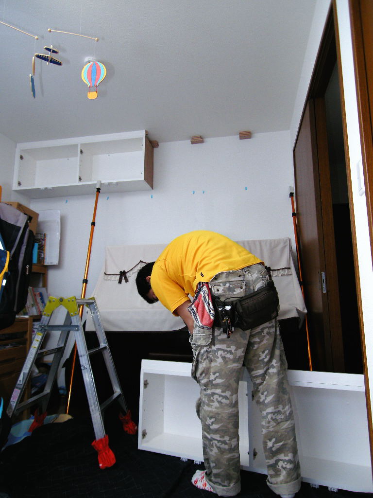 世田谷区 N邸 リビングボード(リビング壁面収納) 施工状況 ②