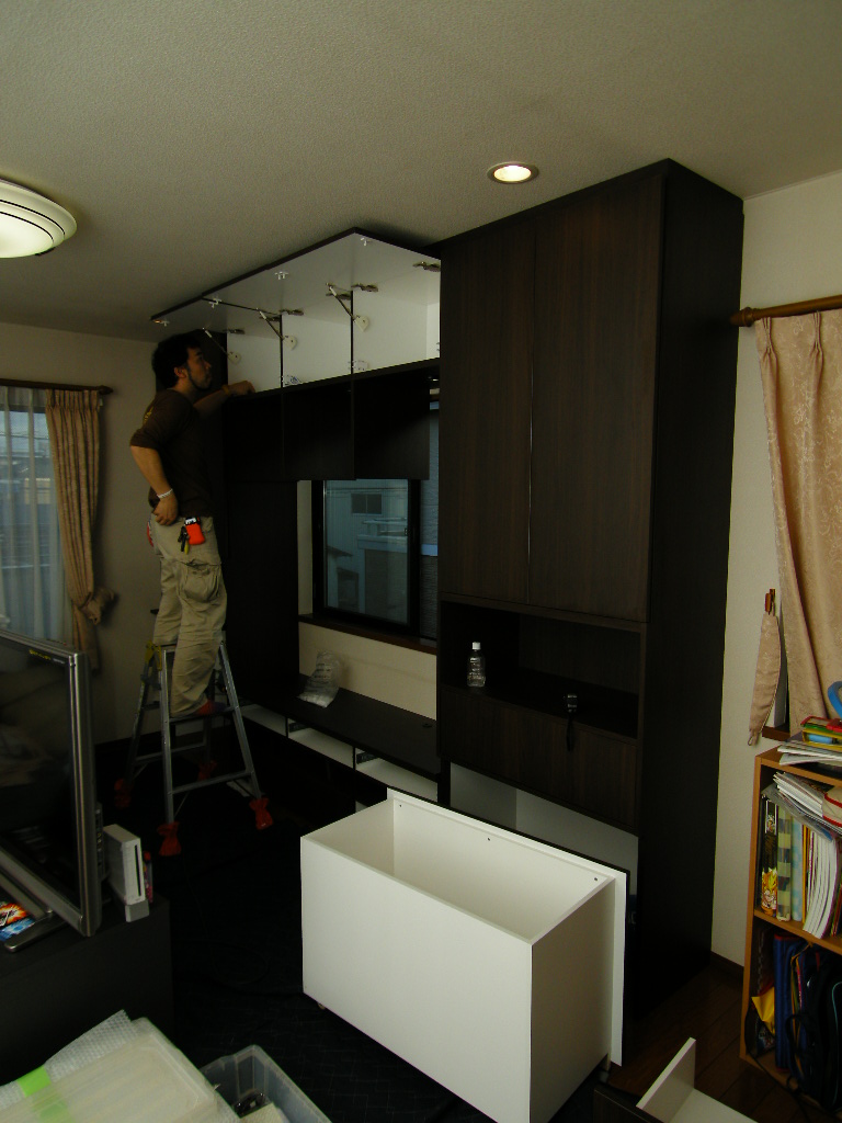 八潮市 H邸 リビングボード(リビング壁面収納) 施工状況 ④