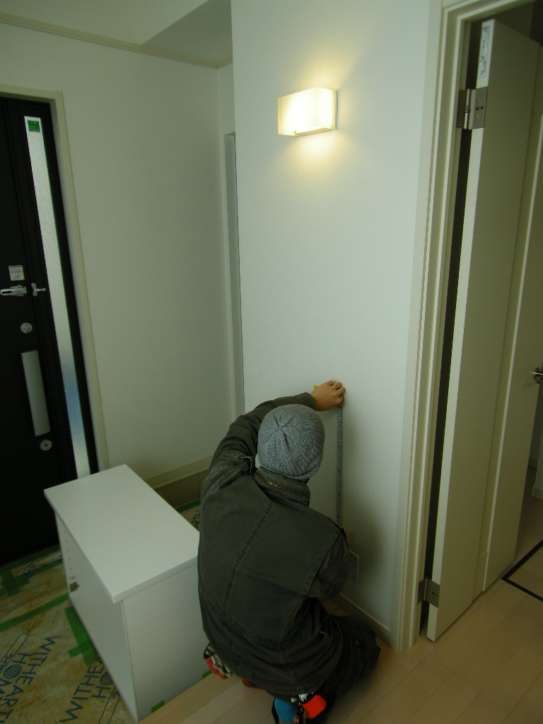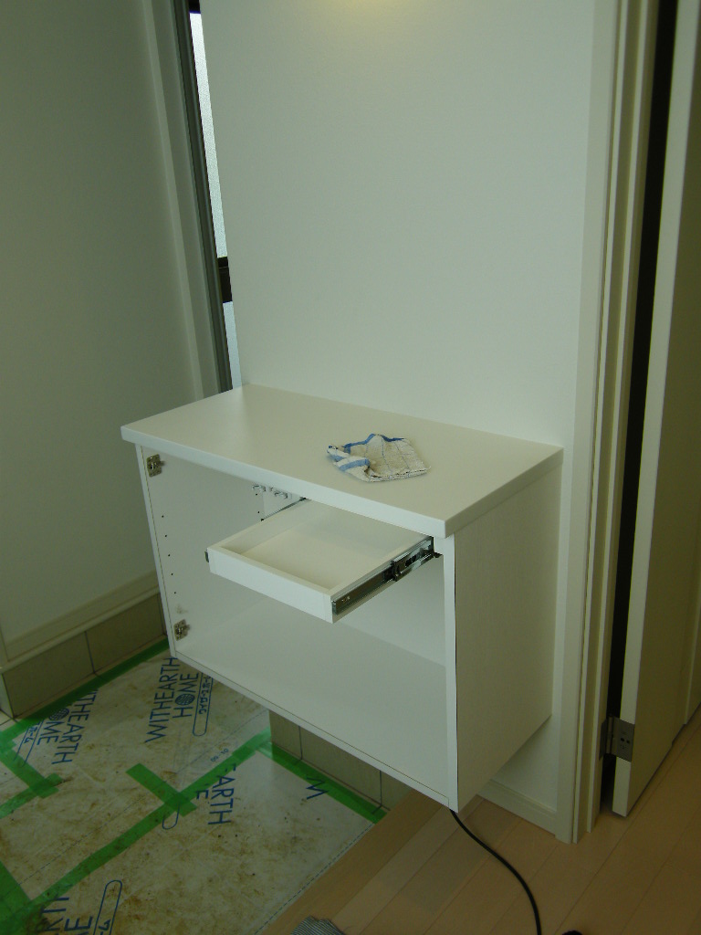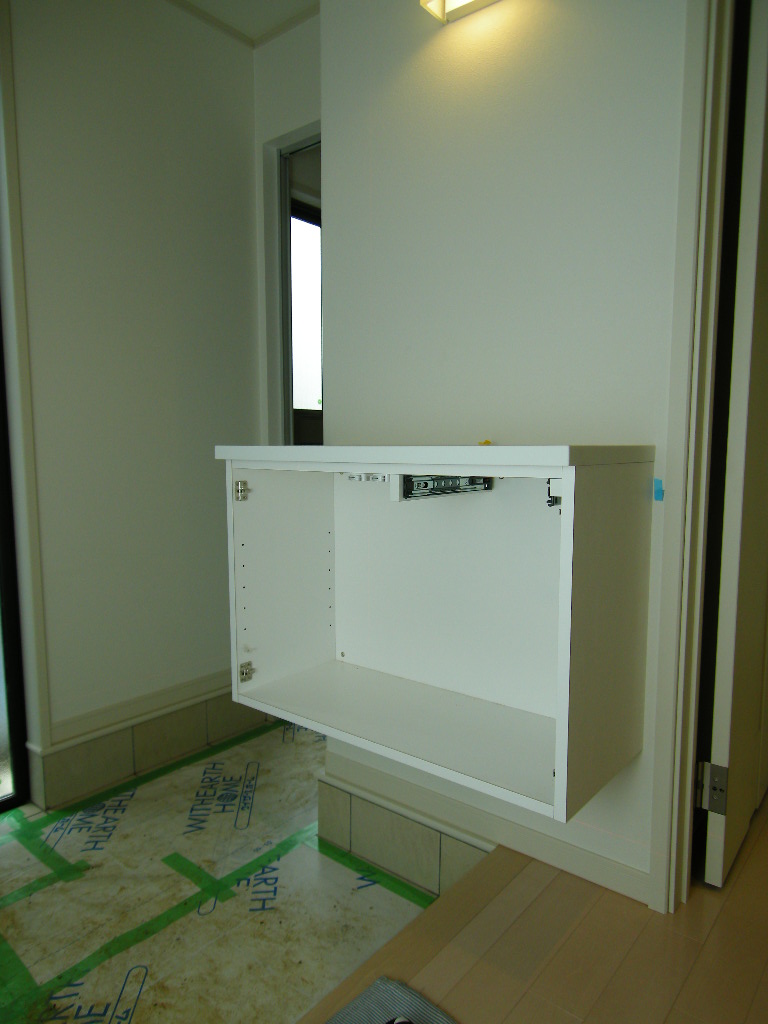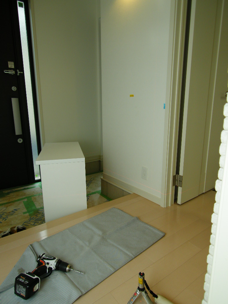 部材の搬入を終えたら玄関収納の取り付けへ。