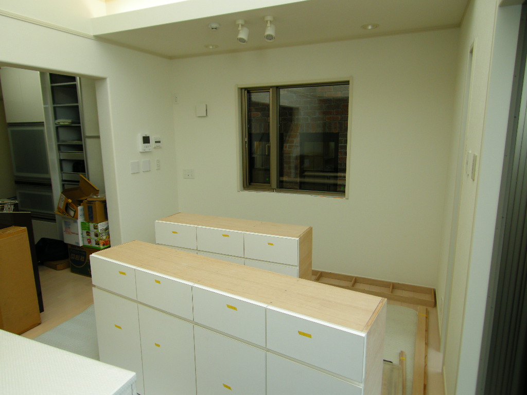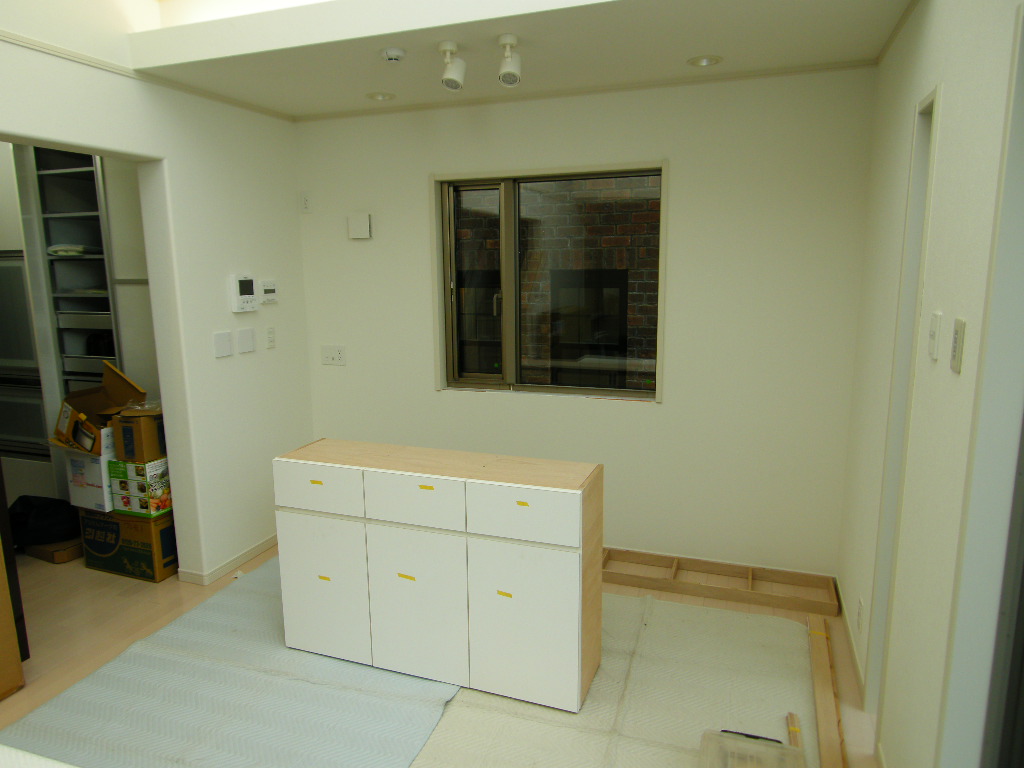 美しが丘 I 邸 リビングボード 施工状況 ①