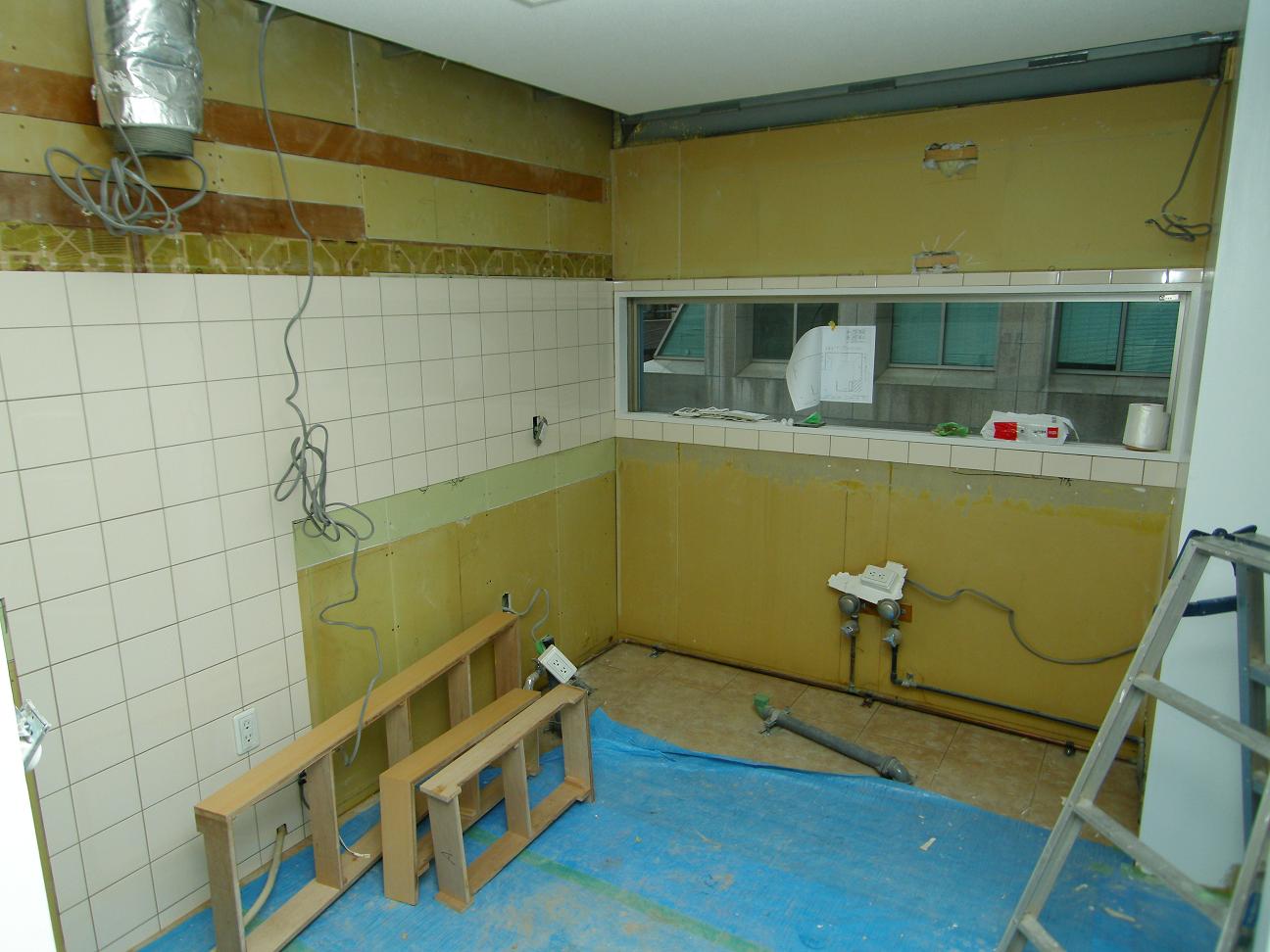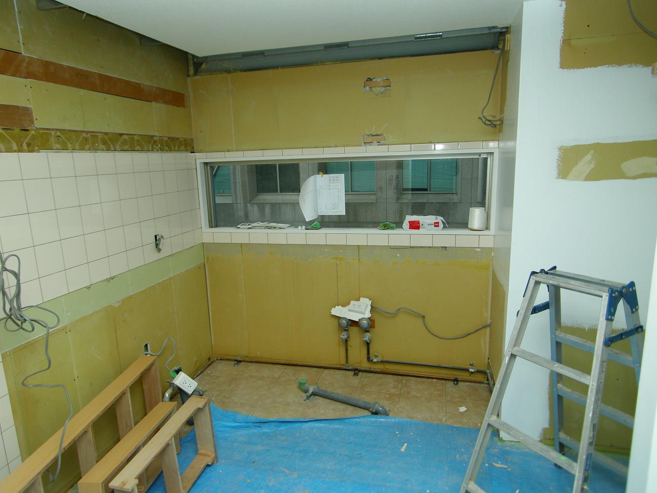 まずは取り付け前(既存キッチン撤去後)の現場状況から。